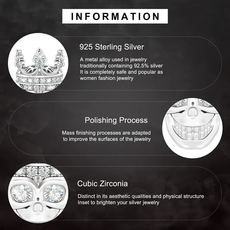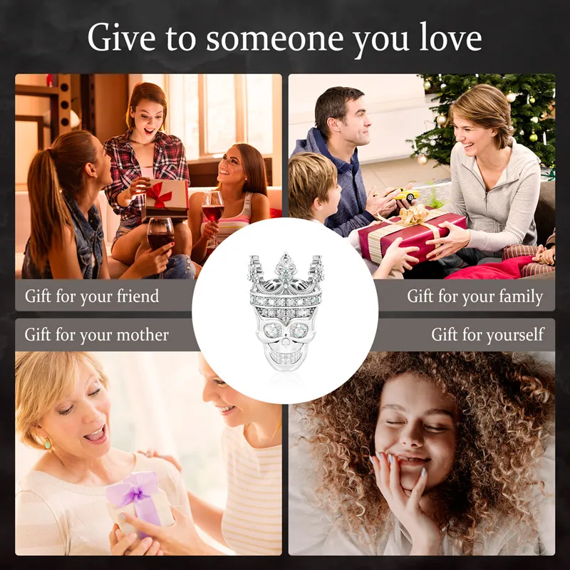 Подвеска в виде черепа с серебряной короной, ювелирные изделия с серебряным покрытием на Хэллоуин, подходят для оригинального браслета, праздничный ужас, призрак, подвеска