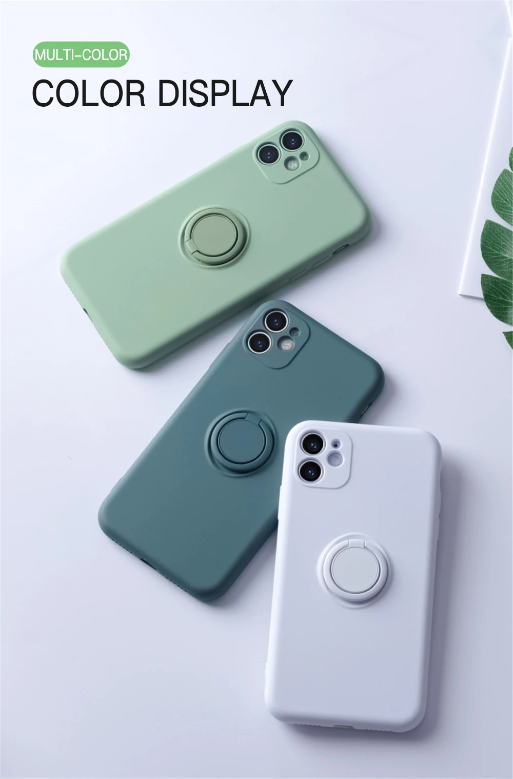 Магнитный чехол из жидкого силикона с кольцом-держателем для IPhone...