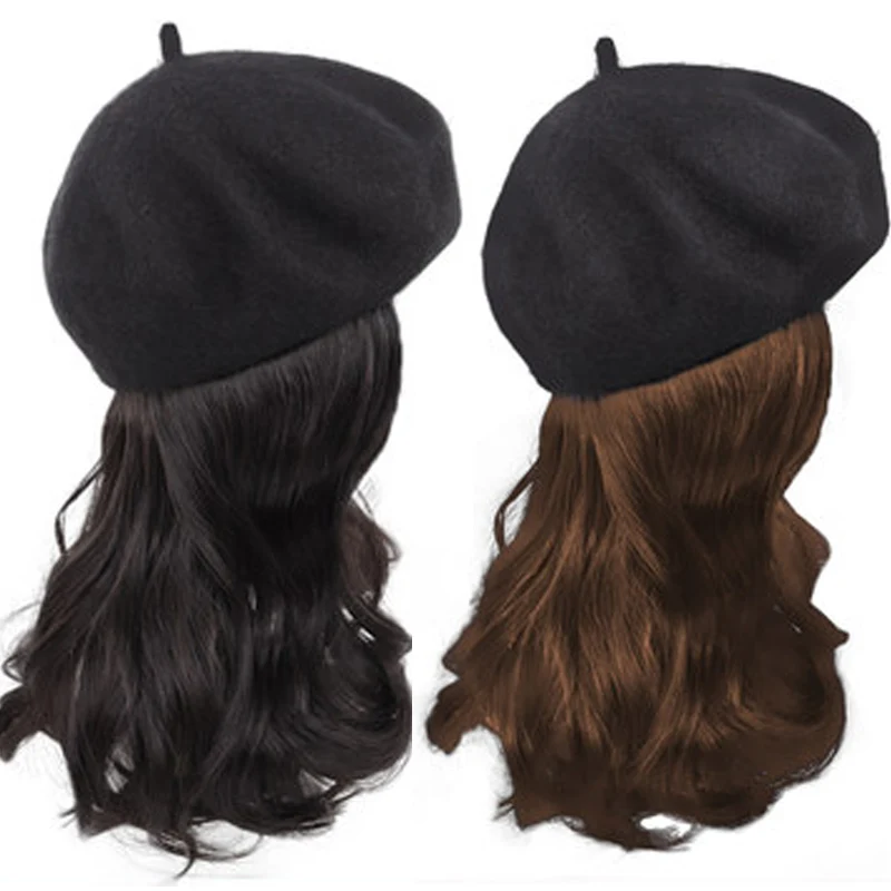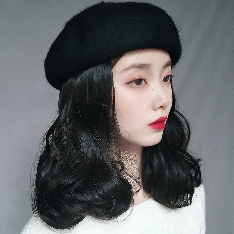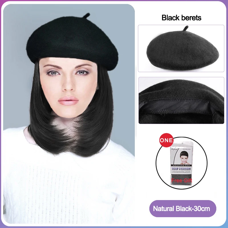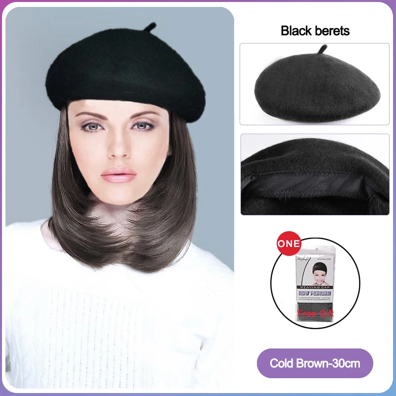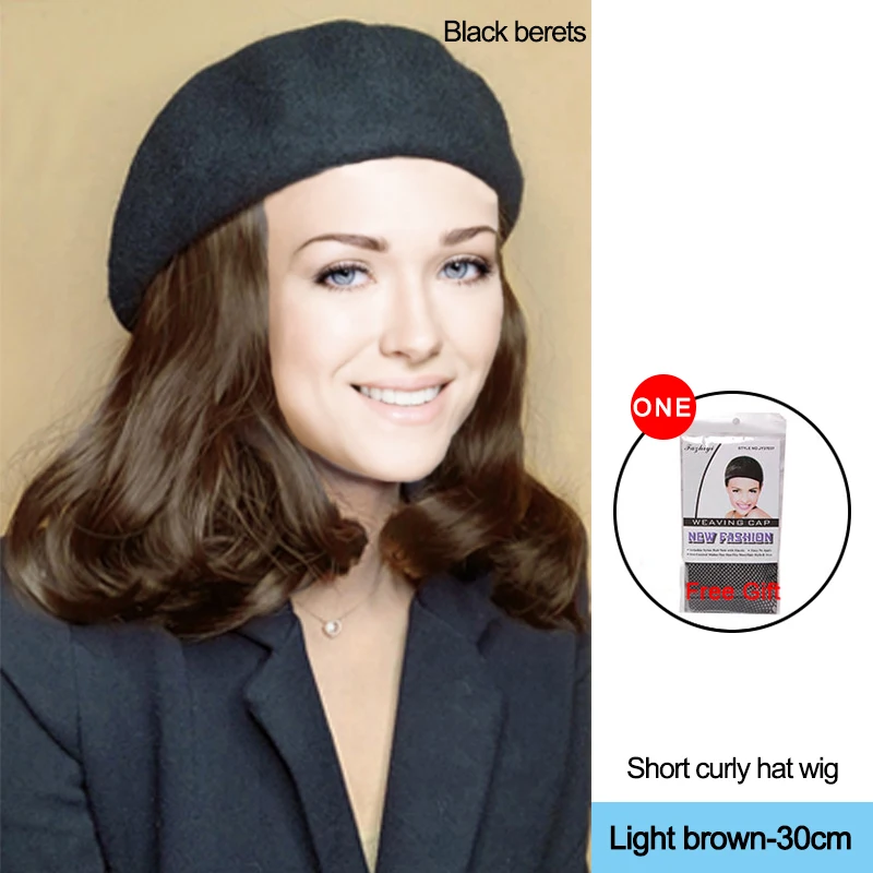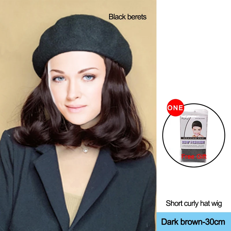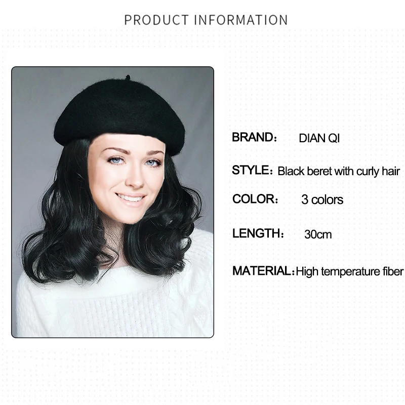 Синтетические волосы DIANQI, Короткие вьющиеся, шляпы парики, для женщин, с черным беретом, естественно соединяемые накладные волосы, головной убор для девочек вечерние парик