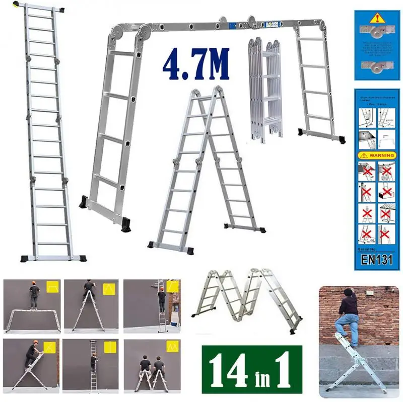 Алюминиевая лестница, 4,7 м, 16-ступенчатая, многофункциональная, складная, регулируемая, промышленная, алюминиевая лестница, бытовой инструмент HWC