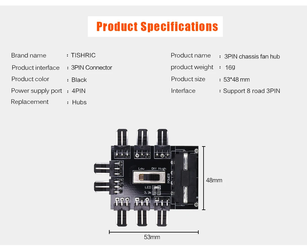 Разветвитель TISHRIC, 1 на 8, 3 контакта, для вентиляторов, Pwm, Sa...