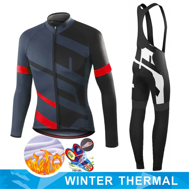 2021 команда Зимняя Теплая Флисовая одежда для велоспорта Мужской трикотажный костюм с длинным рукавом Уличная одежда для езды на велосипеде MTB комбинезон брюки комплект