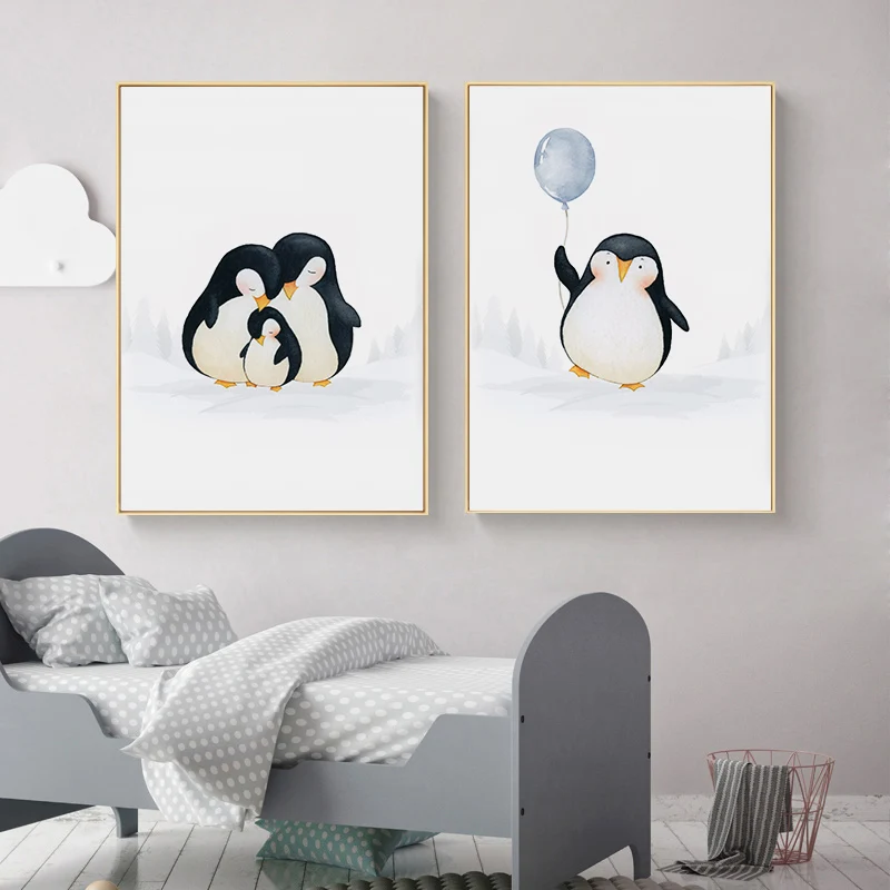 Детская Настенная картина для детской комнаты, постер на холсте с принтом животных, счастливая семья пингвинов, картина в скандинавском стиле, декор детской комнаты