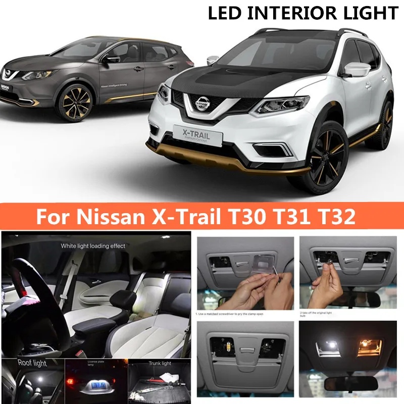 Этот проект предлагает 100% Canbus белые автомобисветодиодный лампы, комплект внутренпосылка для Nissan X-Trail T30 T31 T32 2001-2020
