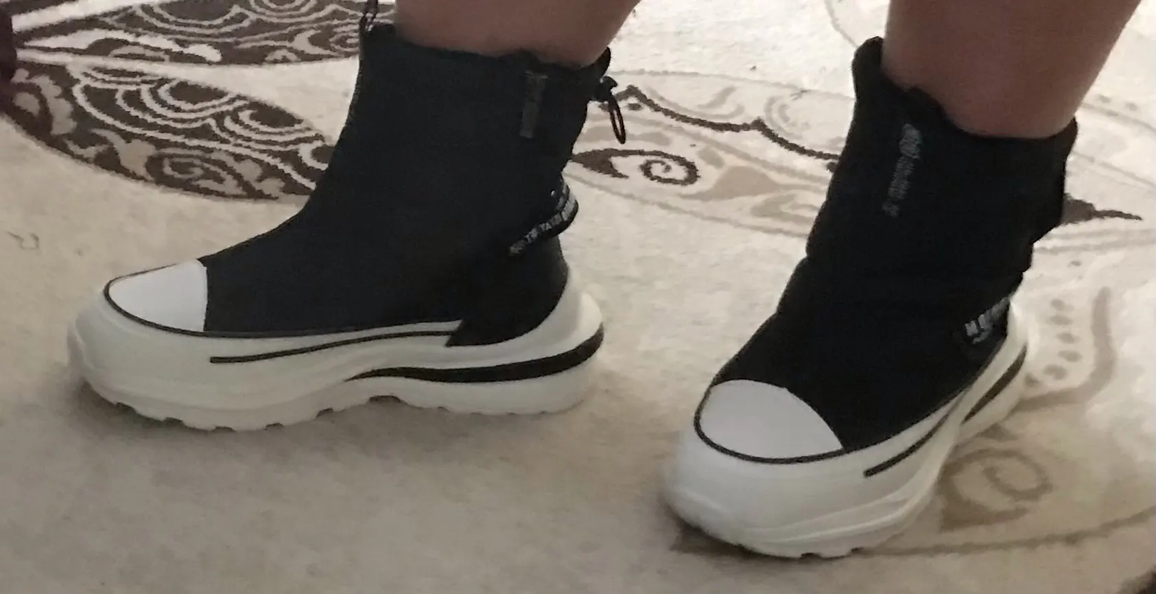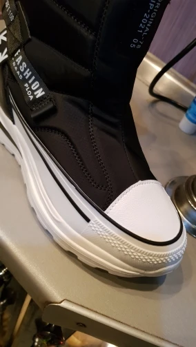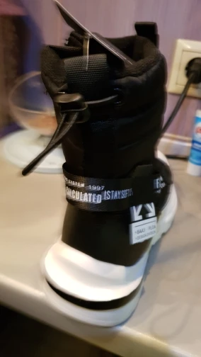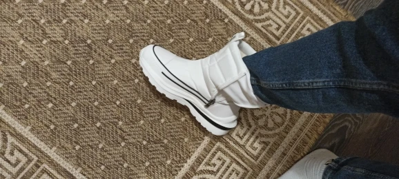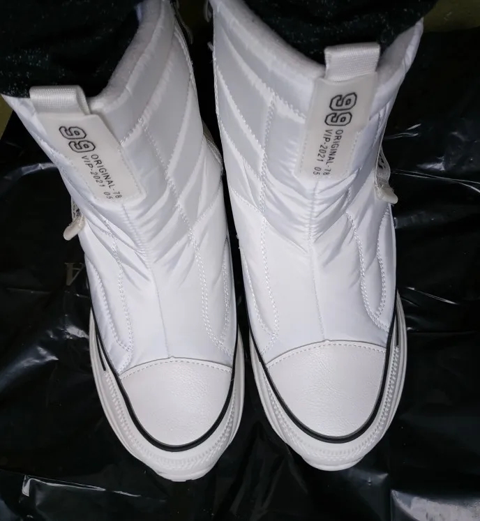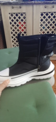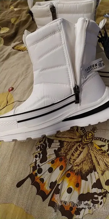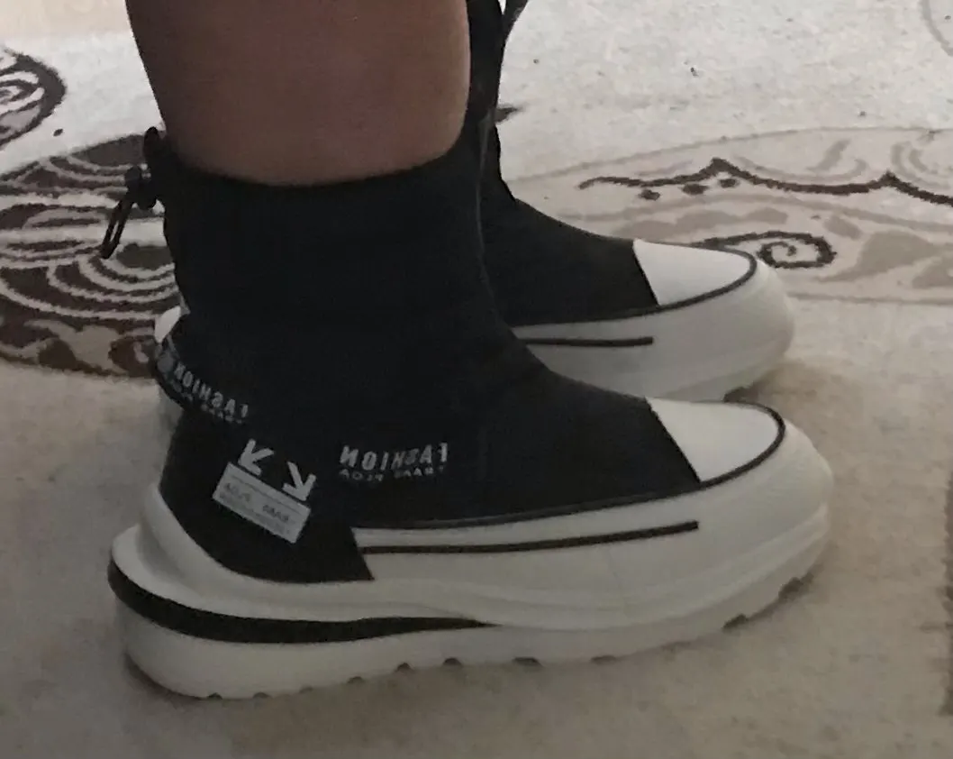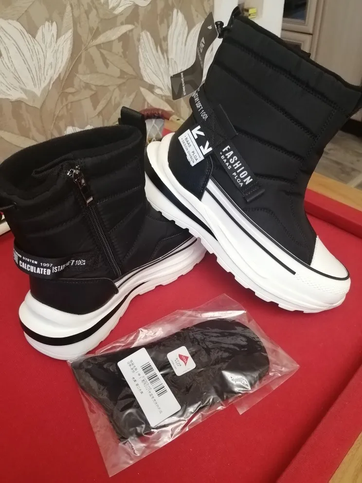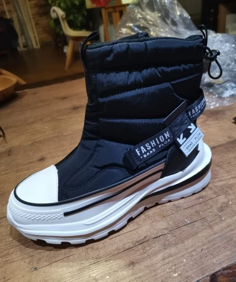 Чорно-білі виглядають дійсно красиво. Я зазвичай ношу кросівки 38 розміру. Цей розмір якраз підходить. Стиль на блискавці легко надягати і знімати, він зручний і теплий. Мені це дуже подобається, хороший продукт.