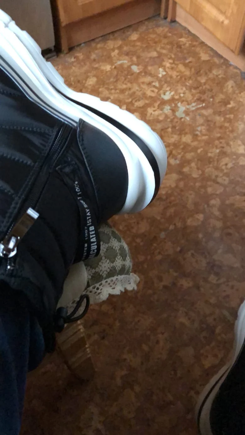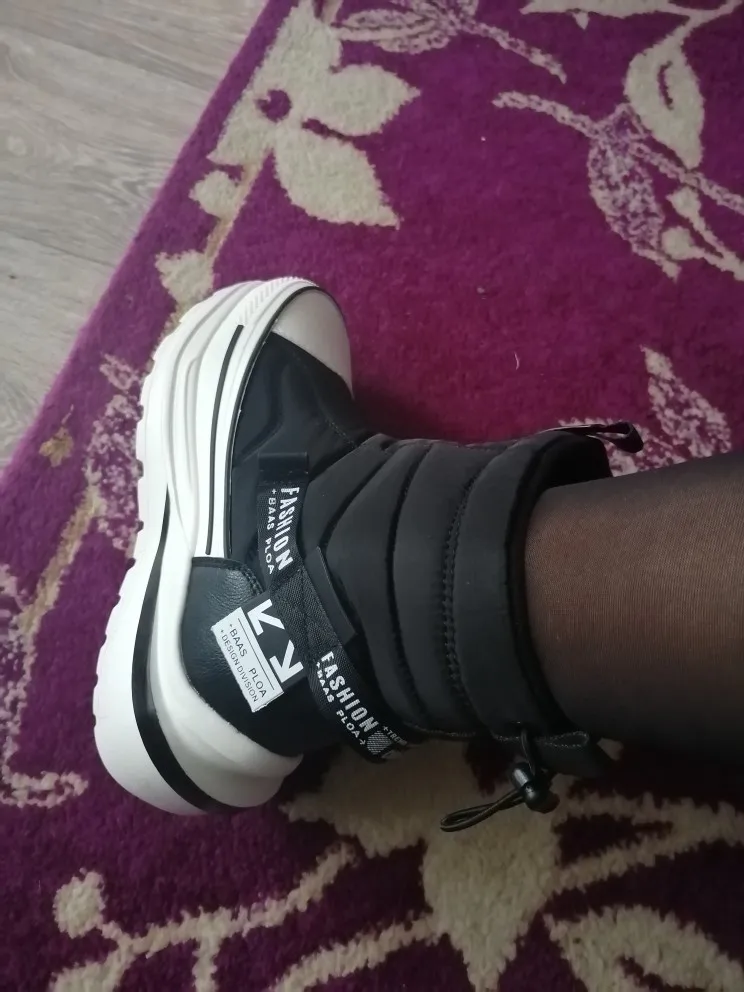 ботинки прикольные, стильные, беру вторую пару. в Ярославскую область пришли за 10 дней. продавец отправил посылку сразу после оплаты. на 36 взяла 37, подошли норм, ну конечно зрительно увеличивают размер ноги, по сравнению с другими дутиками подошва больше почти на 3 см