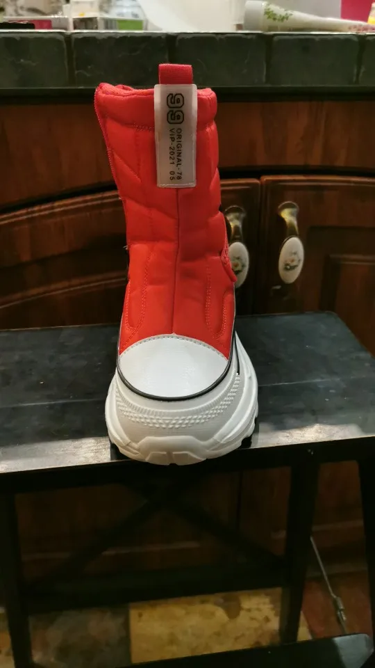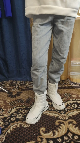 Дутики-великолепные! Качество выше всяческих похвал! Удобные, лёгкие, на ноге сидят, как игрушечки, размер ноги совершенно не увеличивают. На рус 37,брала 38-отлично,есть место для тёплого, не слишком толстого носка. Брала две пары, в подарок две пары носочков и два фирменных пакетика. В носах сапожек пластмассовые уплотнители, все, как положено. Продавец волшебник! Заказала 11.11 ровно в 11 часов, отправил где то через пару часов! Пришли раньше заявленного срока на две недели, несмотря на то,что заказала в пик распродажи. Большое вам спасибо!!! Один из лучших магазинов на Али, продавца и сапожки очень рекомендую!