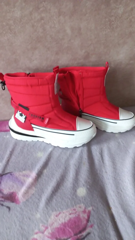 Это вторые боты, первые заказывала желтые 38 размера, но в другом магазине. Обе пары заказывала не себе. На свою стопу 23,5 см, 37 размер российский, нога узкая, тонкий носок - 38 (желтые) были впритык и мысок сдавливало, походила по квартире, посидела в них, вроде барашек примялся, но мысу все равно было не комфортно. 39 (красные) - сели идеально, нигде ничего не давило, но смотрятся немного громоздко из-за выступающей подошвы. Обе пары яркие, как будут в носки, покажет время. Продавцу спасибо!