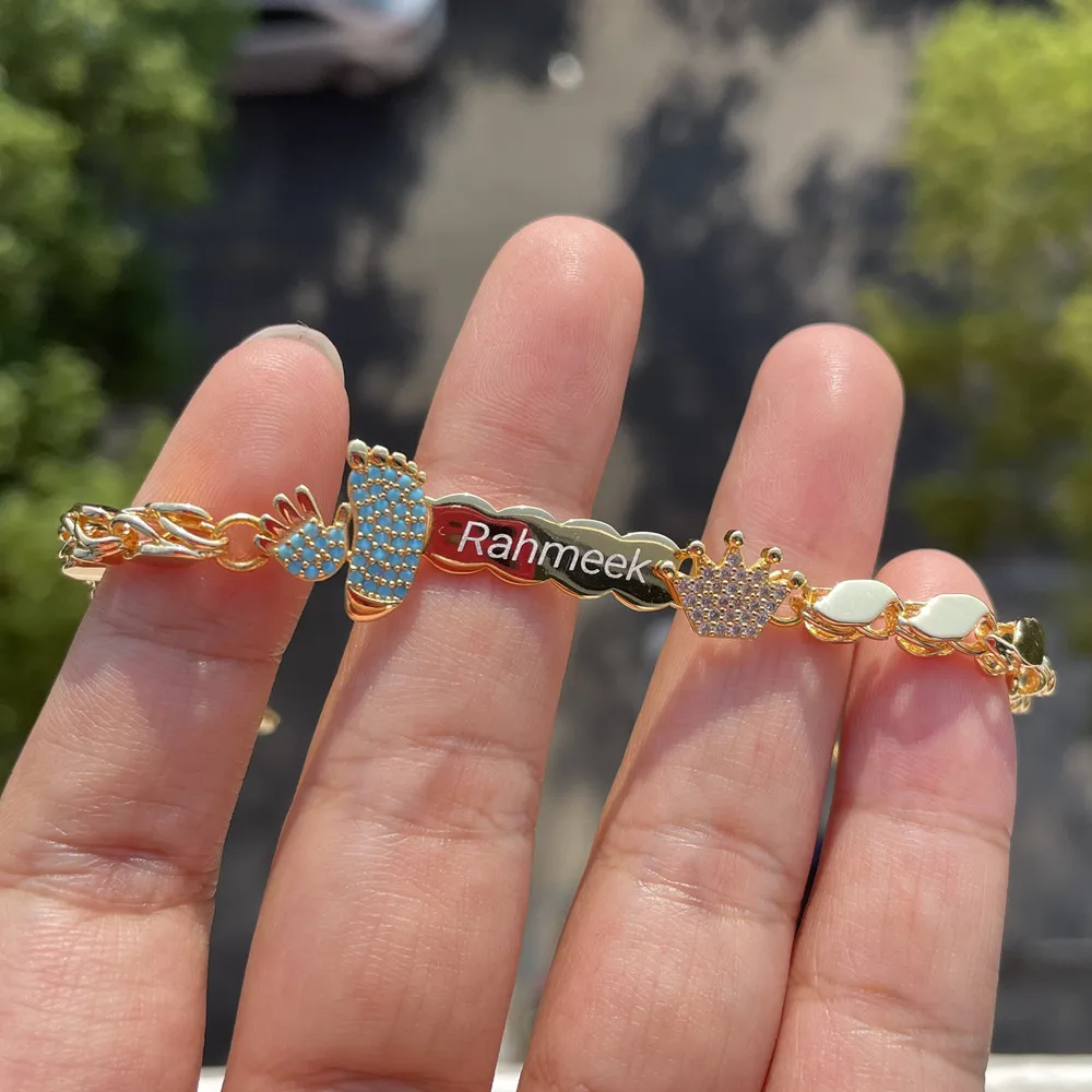 Модный браслет с именем ребенка на заказ, персонализированные браслеты с именной табличкой, браслет с выгравированной милой именной короной из циркония, браслет с камнем-талисманом