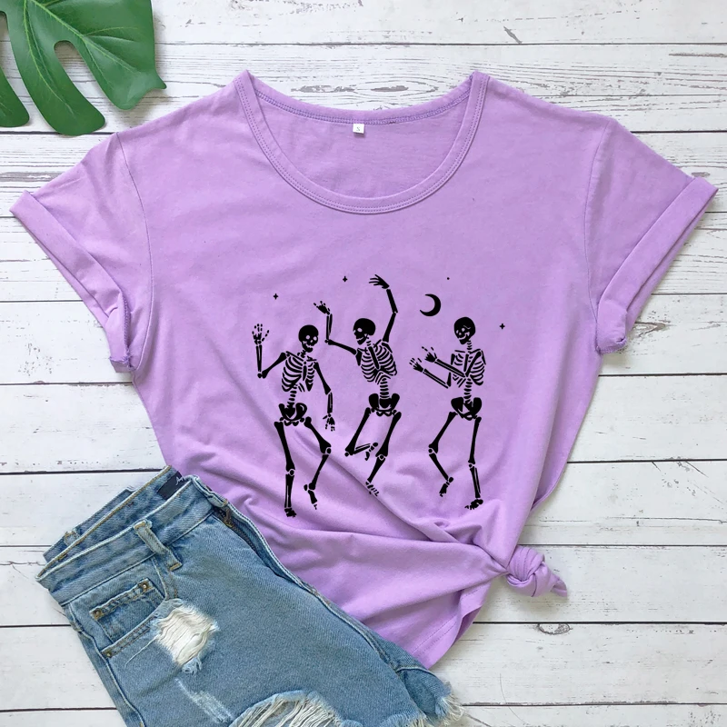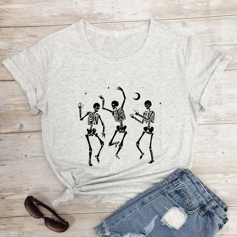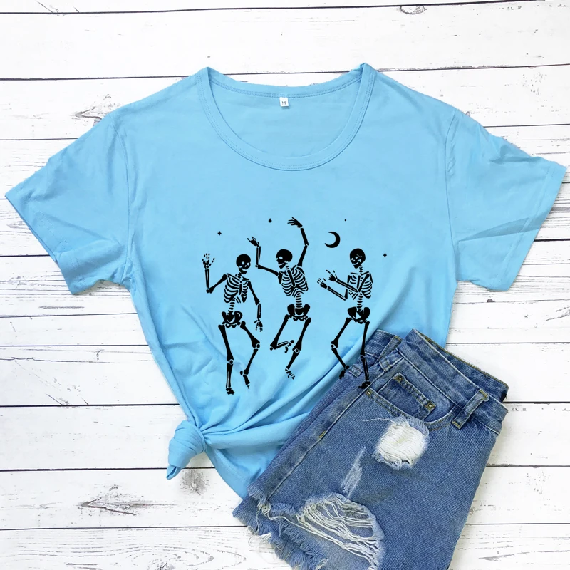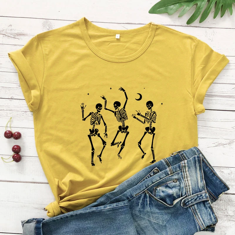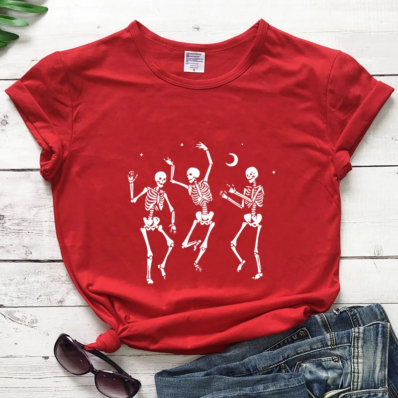 Женская футболка со скелетом для танцев на Хэллоуин, праздничная Готическая футболка, сезон осени