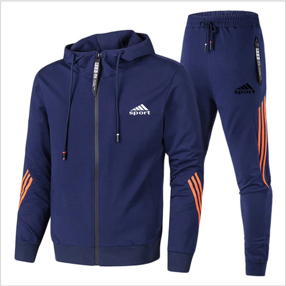 Новинка, осенне-зимняя мужская спортивная одежда, мужская толстовка с капюшоном, Мужская Уличная одежда, модный брендовый комплект из двух предметов для отдыха, фитнеса и бега