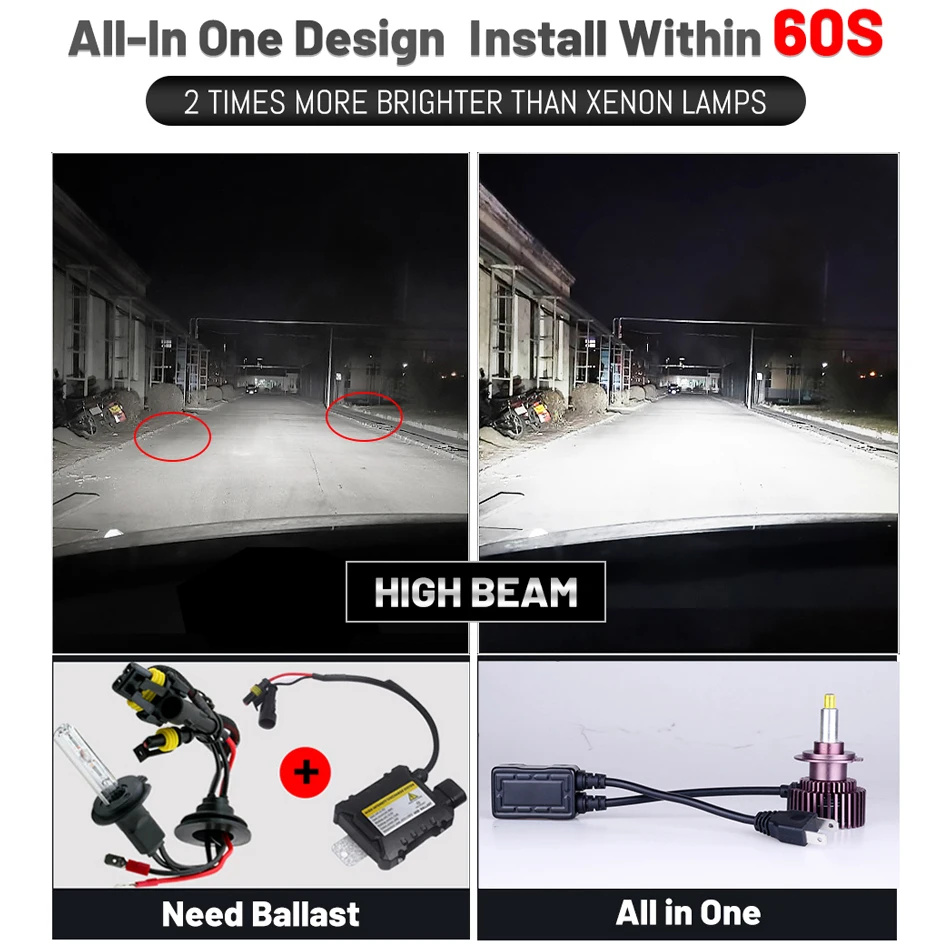 Светодиодная фара H7, H1, 9012, 25000LM, HID D2S, D4S, H11, H8, 900...