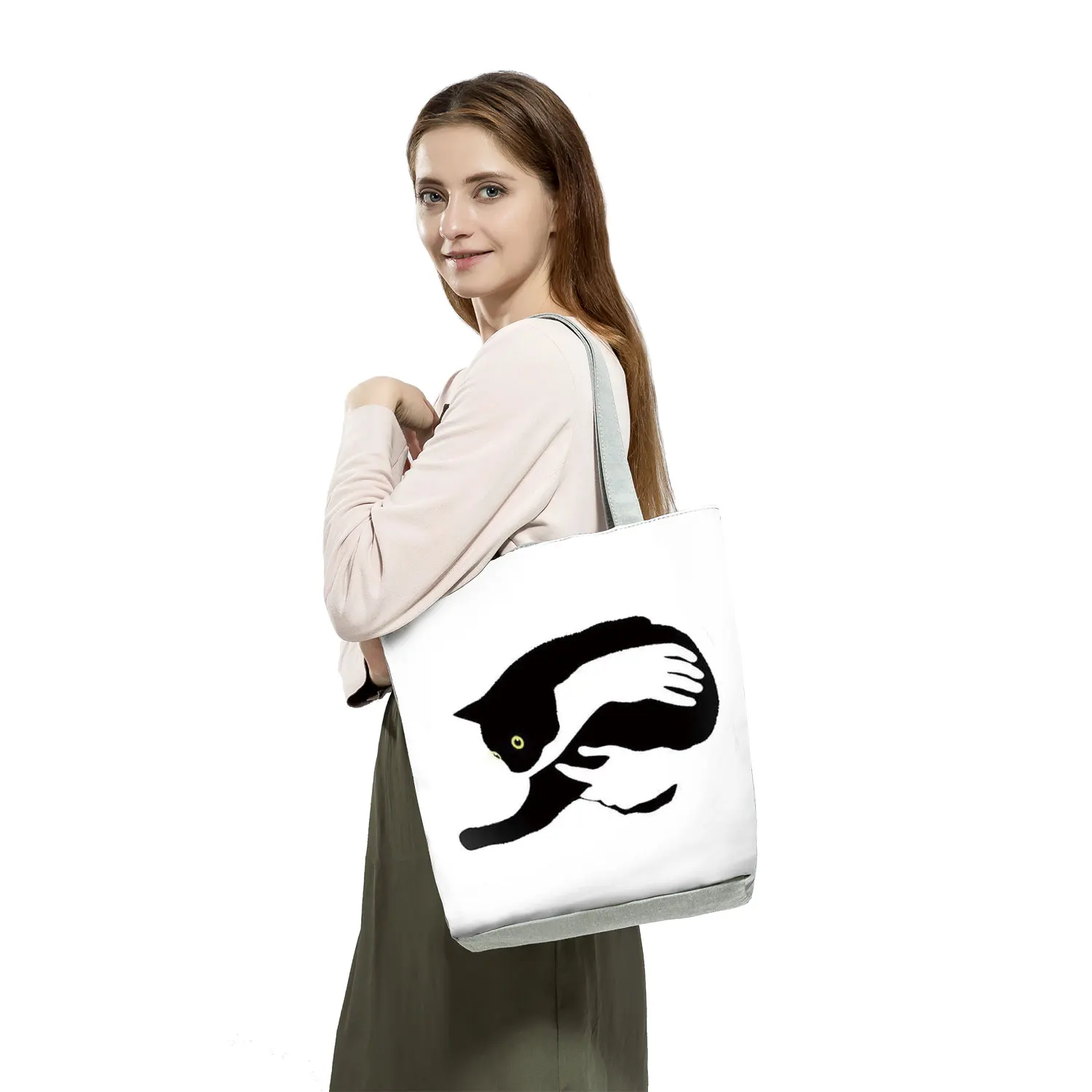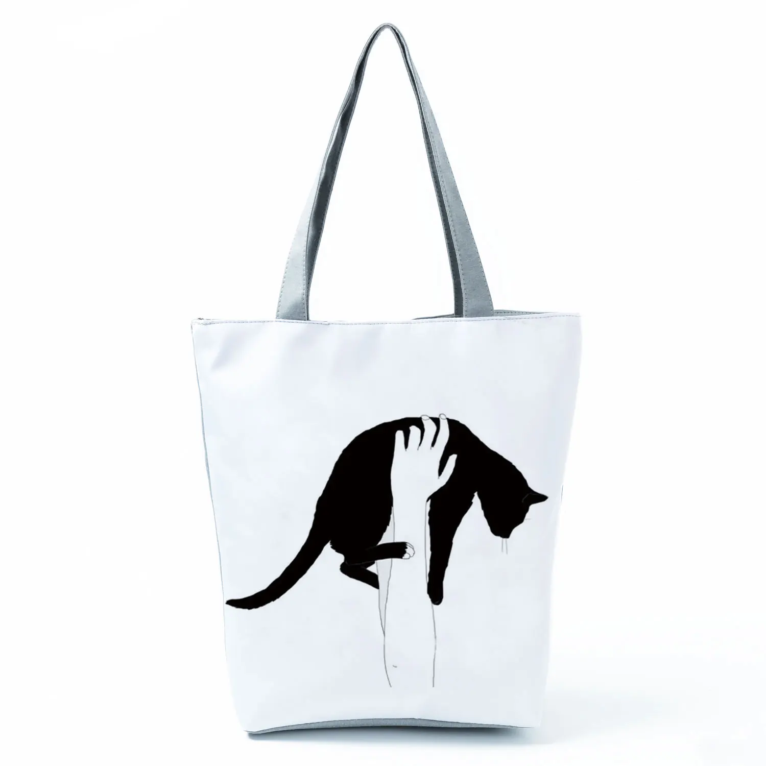 Дизайнерские сумки, женская сумка, новинка 2021, черная сумка для покупок с принтом кота, сумка для офиса, многоразовые повседневные сумки на плечо, Вместительная дорожная сумка