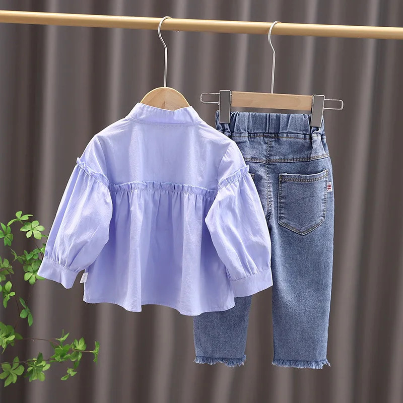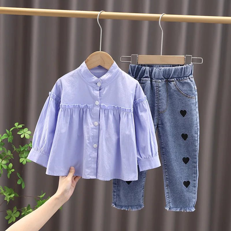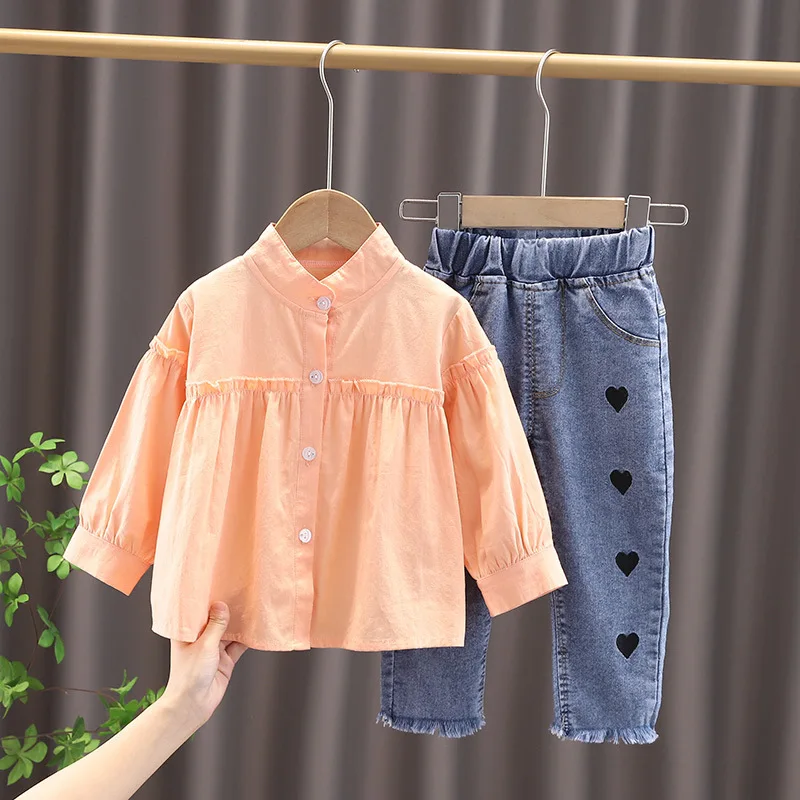 Весенняя одежда для маленьких девочек, детский наряд, модная Повседневная рубашка с длинным рукавом и милые брюки с принтом Love, комплект из двух предметов 1, 2, 3, 4, 5 лет