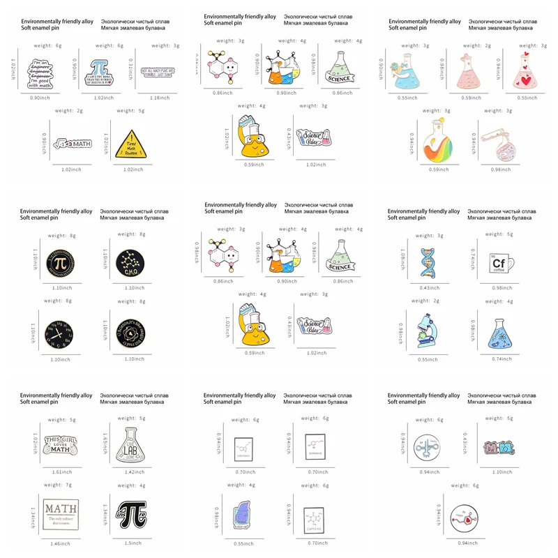 Эмалированные булавки для научных принадлежностей, наборы для химической физики, математики, броши на лацкан, аксессуары для студентов, оптовая продажа