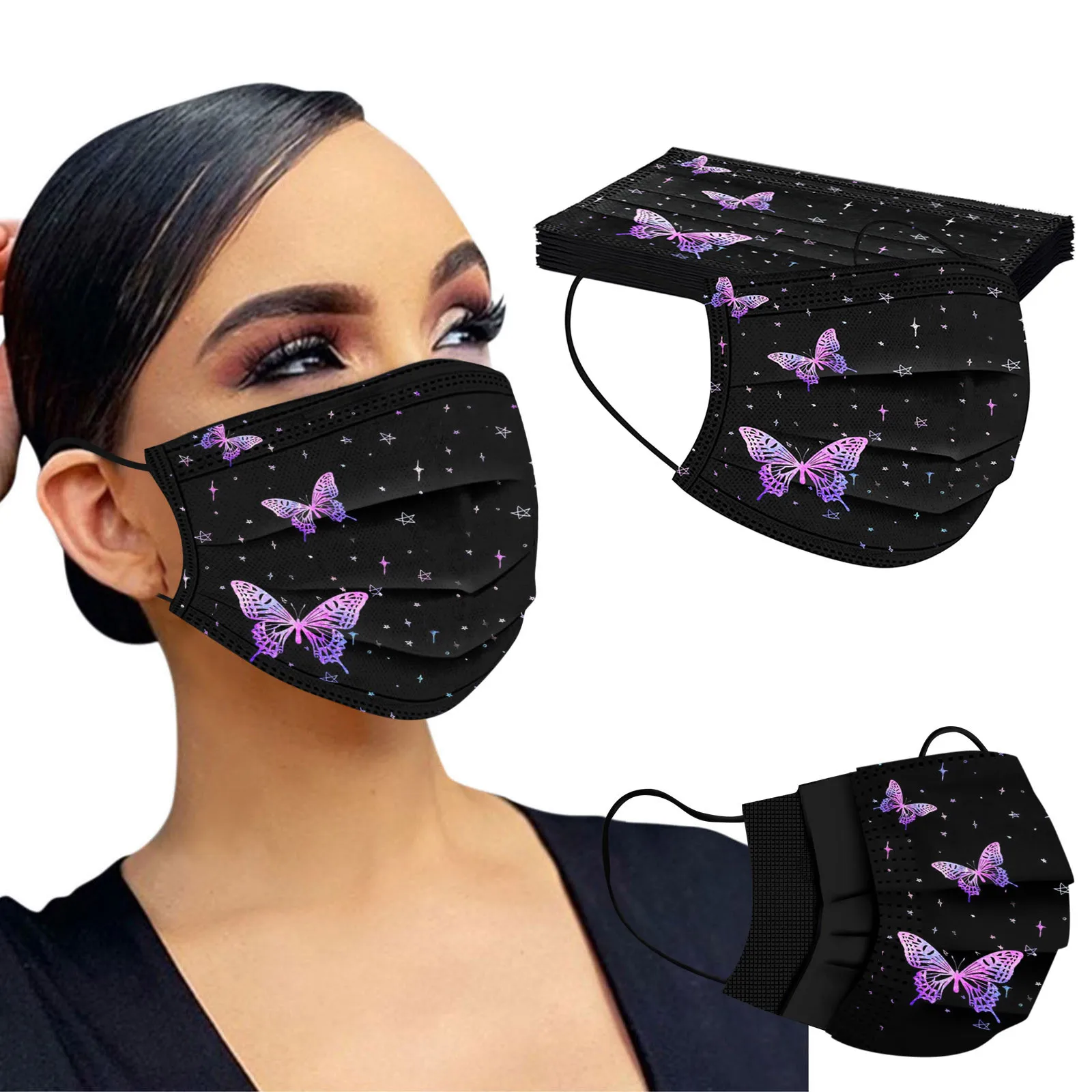 10 шт., одноразовые маски для лица для взрослых, с принтом бабочек
