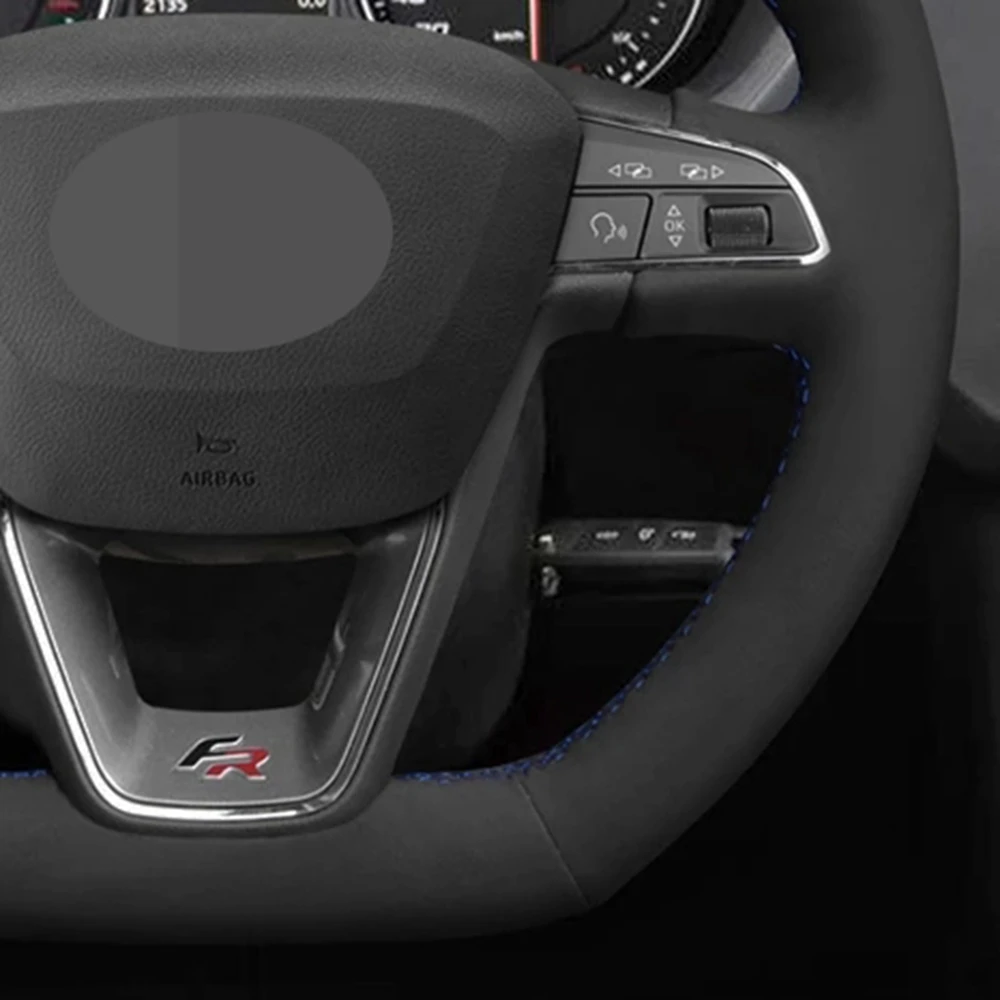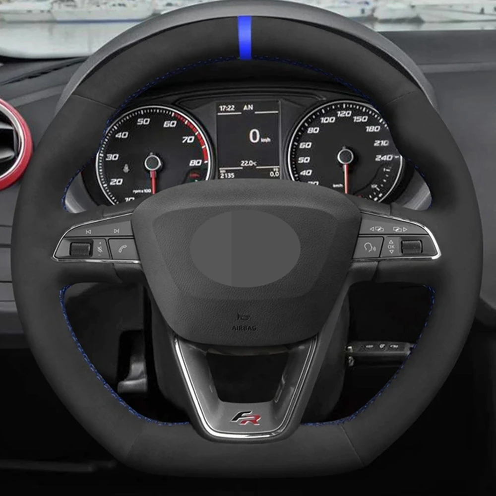Чехол рулевого колеса автомобиля Синий Маркер, мягкая черная замша для Seat Leon Cupra R 2013-2019 Ibiza Cupra 2016-2019 Ateca FR 2016-2019