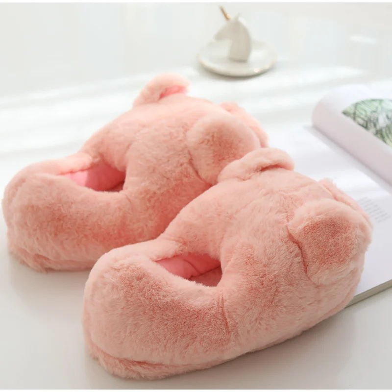Зимние женские теплые домашние тапочки, женские модные мягкие пушистые плюшевые тапочки с милым розовым поросенком, женские удобные повседневные хлопковые туфли