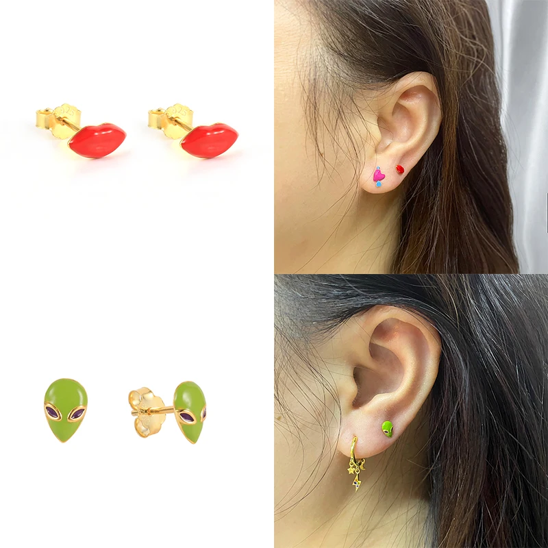 Женские серьги-гвоздики из серебра 925 пробы с эмалью