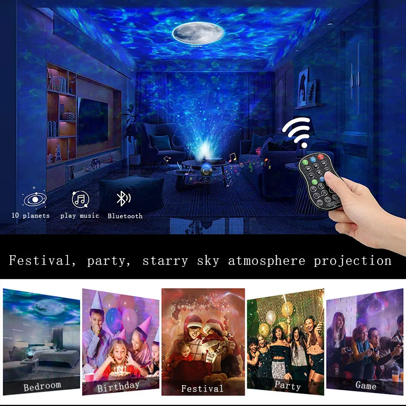 Светодиодный Звездный Галактический проектор, морской волны, ночник, синий зуб, музыкальный проигрыватель, декор для комнаты, поворот, звездное небо, проектор для детей, подарок