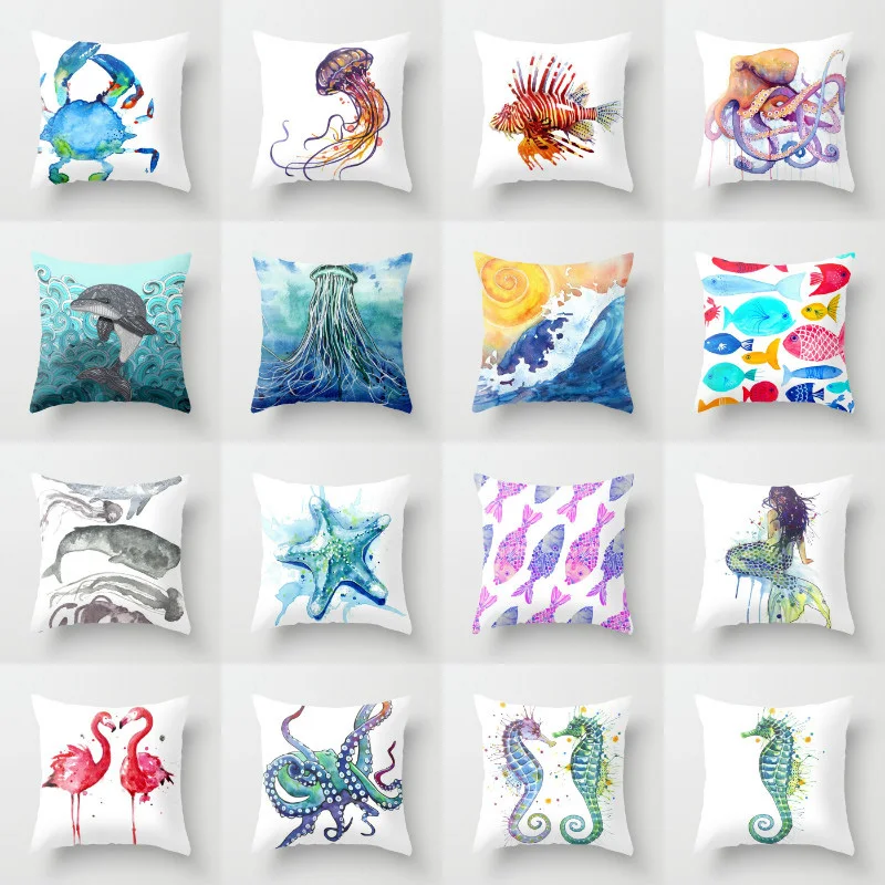 Декоративная наволочка морской организм из полиэстера и хлопка для диван кресло подушка для гостиной крышка размером 45*45 см осенние украшения