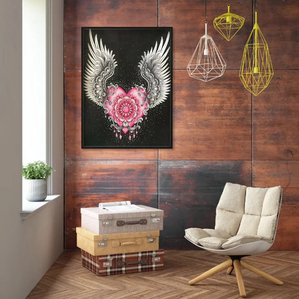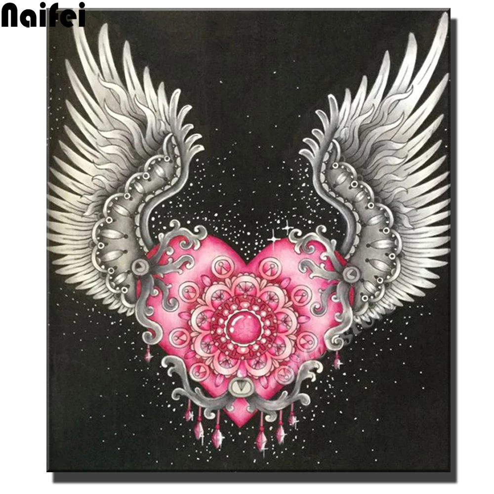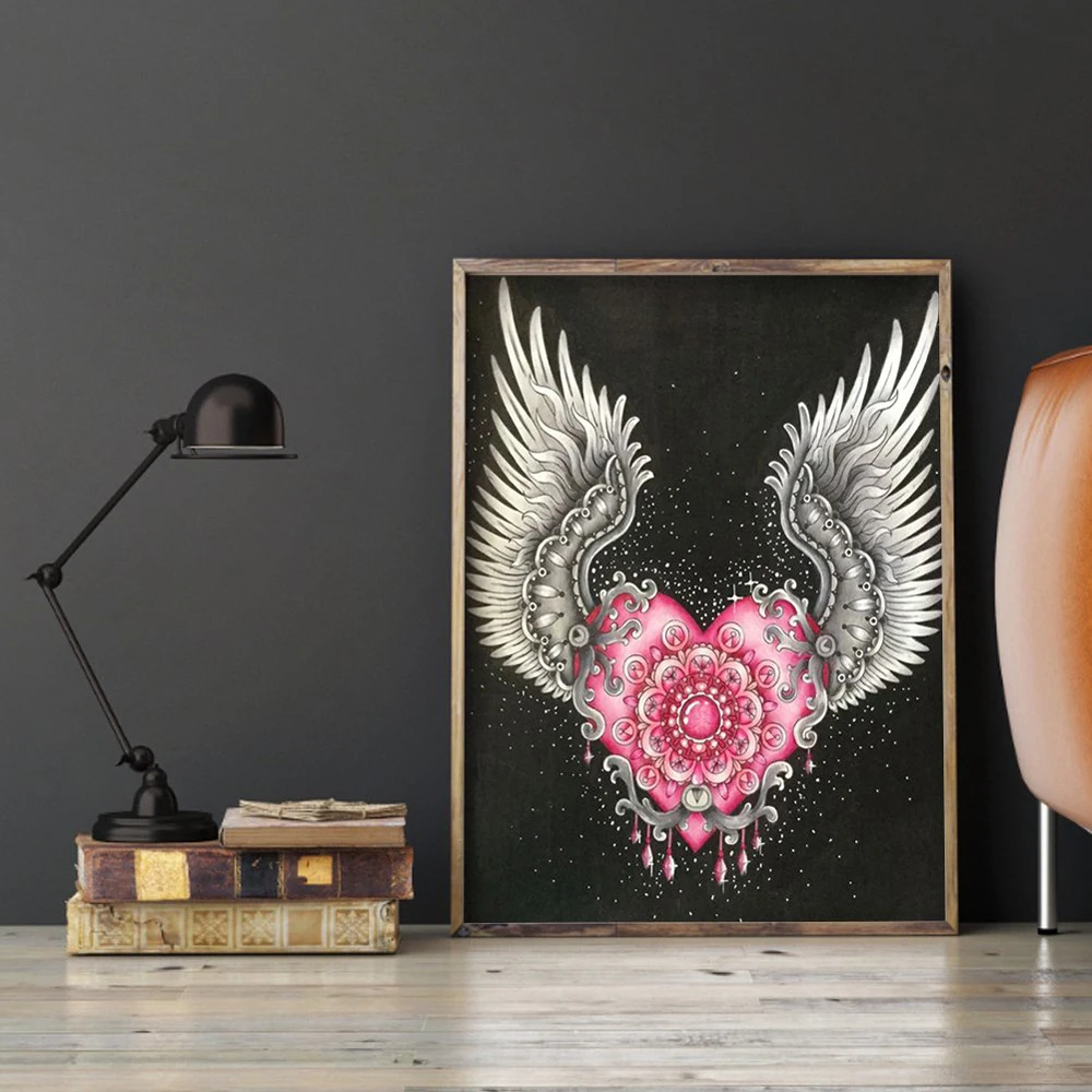 Алмазная картина с крыльями любви 5D сделай сам, рисунок сердца, вышивка крестиком, мозаика с абстрактными крыльями, алмазная вышивка, домашний декор