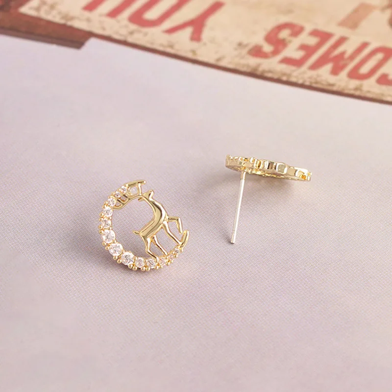 Корейские модные милые рождественские серьги-гвоздики с оленем для ...