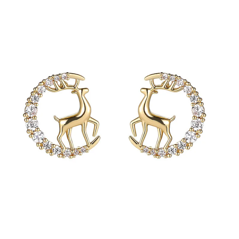 Новые модные рождественские серьги-гвоздики для женщин, милые рождественские серьги с оленем и кристаллами, украшения для рождественской и новогодней вечеринки