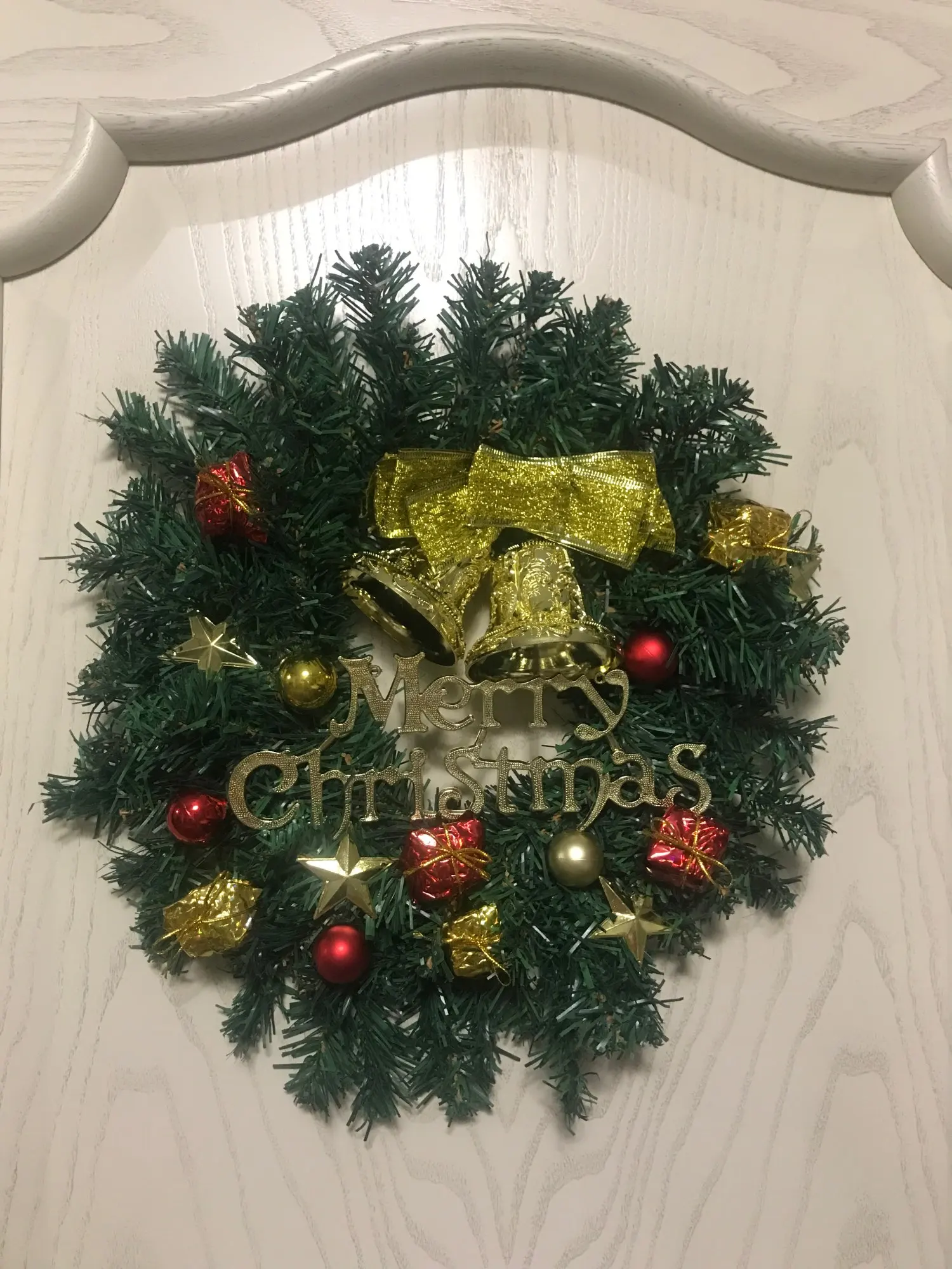 Венок изначально произвёл дешёвое впечатление, но в принципе так и есть, сама елка не очень, но как я его расправила и повесила на дверь, понравился. Перекрывает дешевую елку, красивый золотой бант и надпись с игрушками. Смотрится отлично!!!
