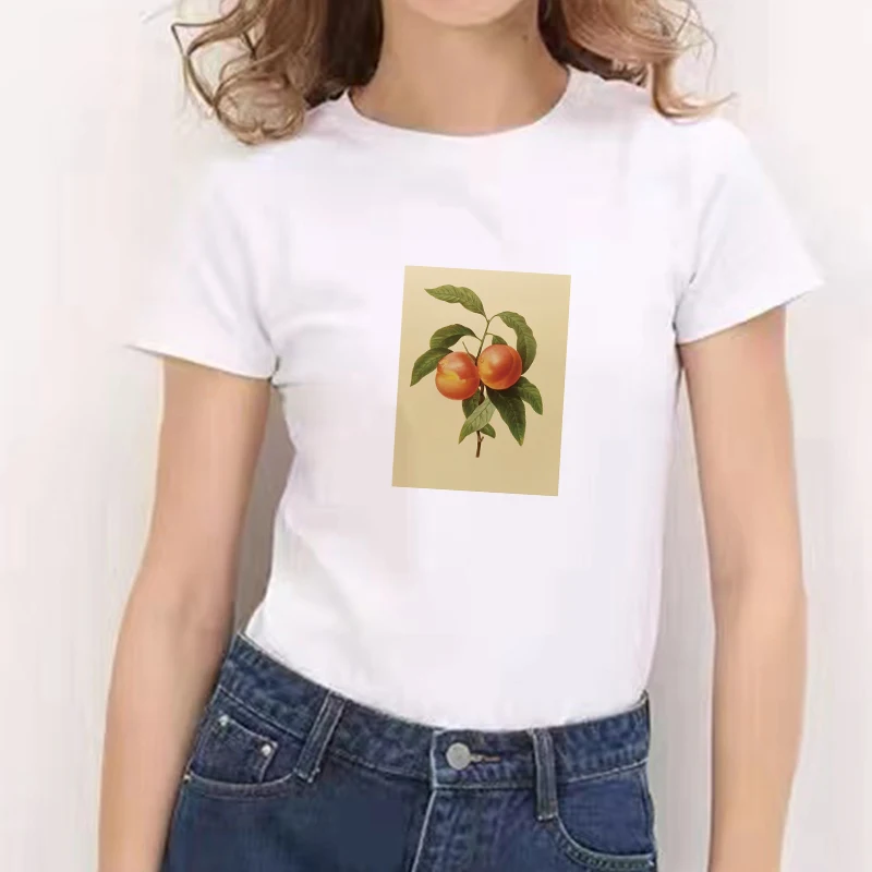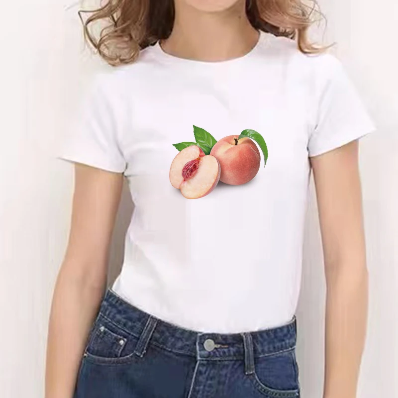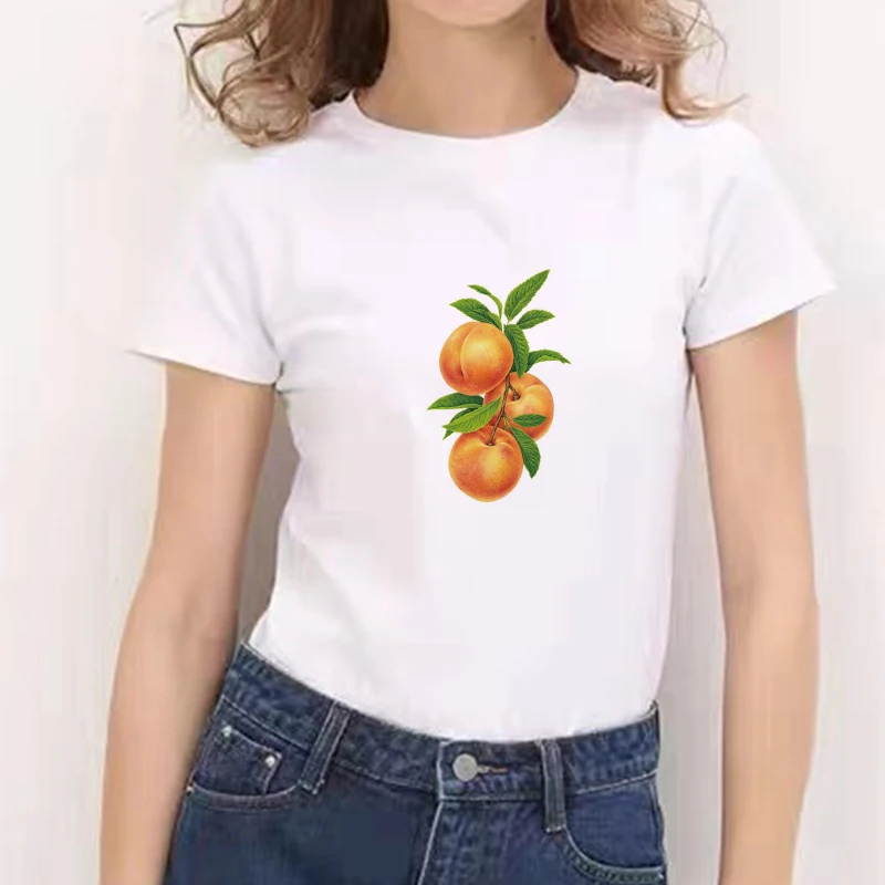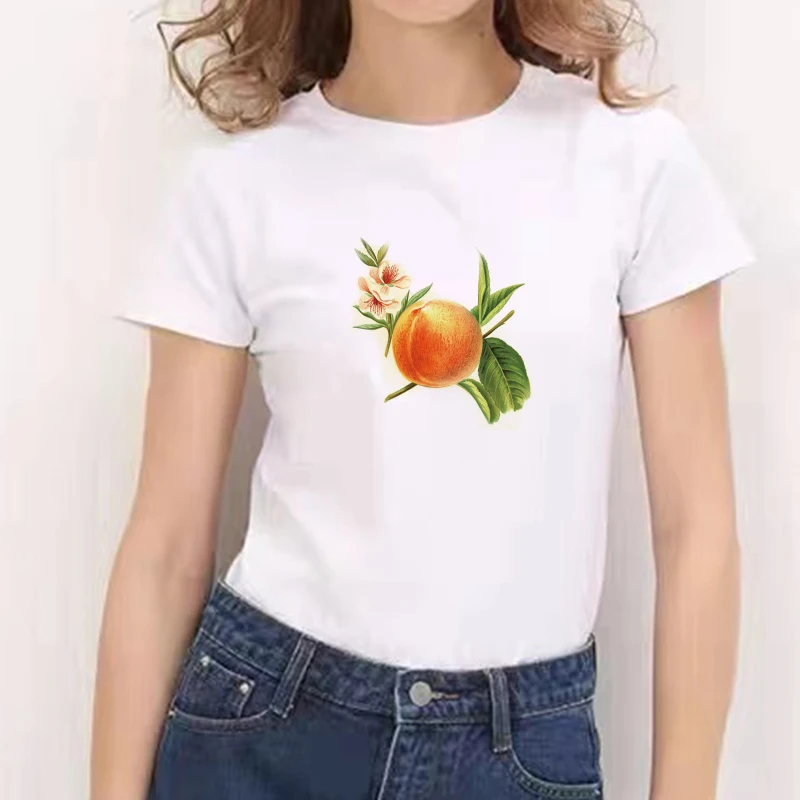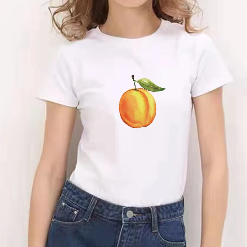 Новинка 2021, футболка в стиле Харадзюку С персиковой тематикой, летние топы с круглым вырезом 90-х, футболка с графическим принтом для девочек в стиле ольччан, женская футболка, женская одежда