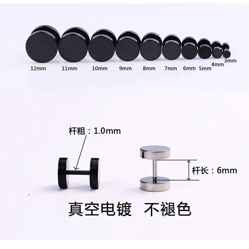 Серьги-гвоздики из нержавеющей стали для мужчин и женщин, ювелирные изделия в стиле панк с плоским и круглым стержнем, цвет черный, серебристый, 1 пара