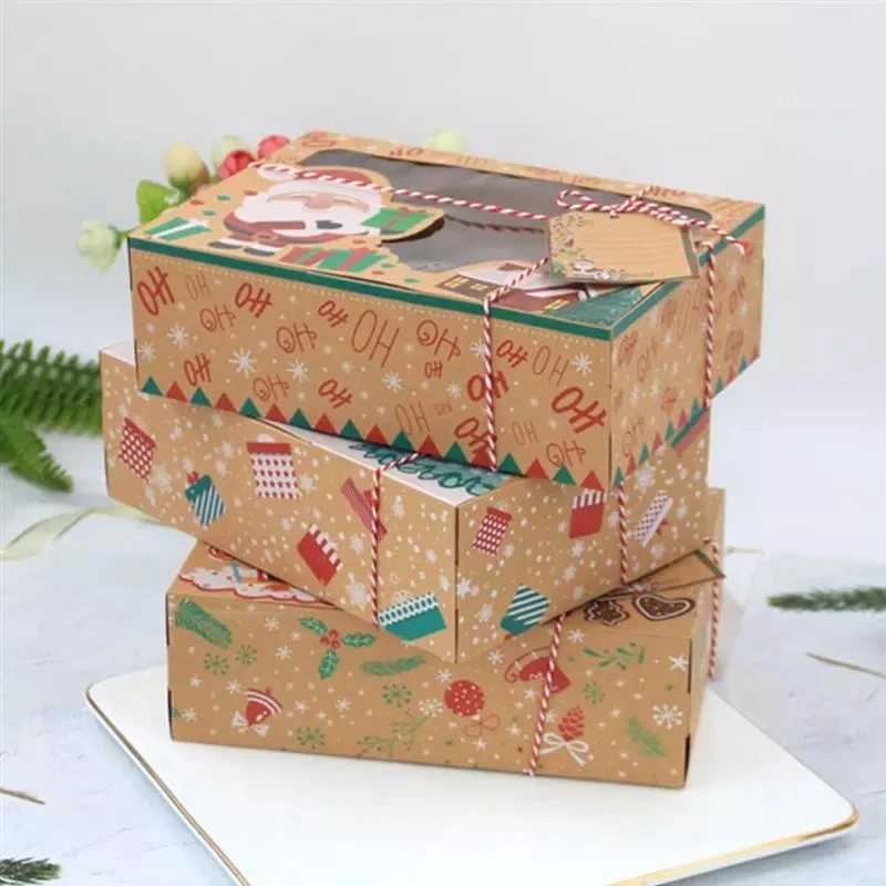 12 шт., портативная Рождественская Подарочная коробка из крафт-бумаги