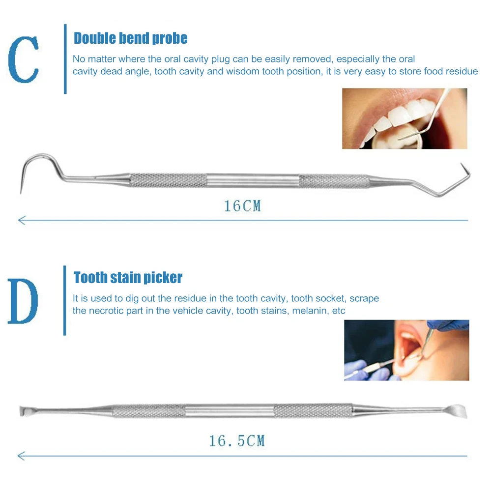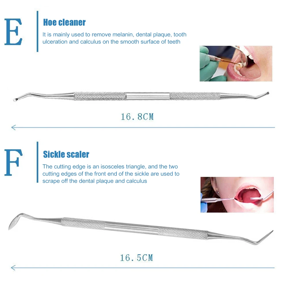 6 шт.: 1 щипцы, 1 зонд, 1 противотуманное зеркало для полости рта, 1 скалер для мотыги, 1 серповидный скалер, 1 скалер для удаления пятен зубов5 шт.: 1 щипцы, 1 зонд, 1 противотуманное зеркало для полости рта, 1 скалер для мотыги, 1 серповидный скалер4 шт.: 1 щипцы, 1 зонд, 1 противотуманное зеркало для полости рта, 1 скалер для мотыги