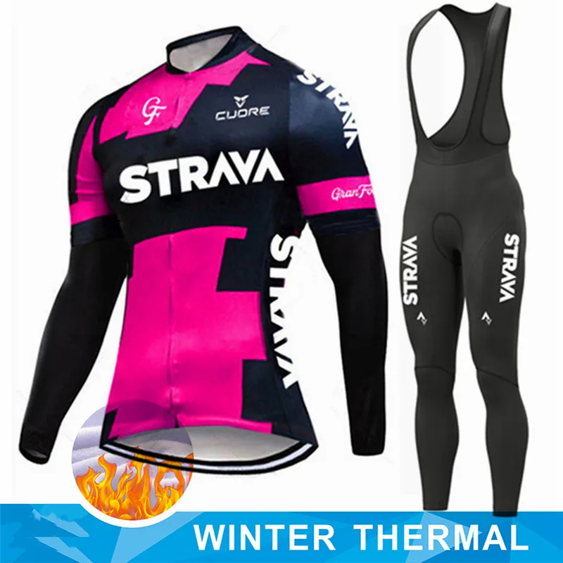 Зимняя Теплая Флисовая одежда для велоспорта STRAVA 2022, мужской костюм из Джерси с длинным рукавом, уличная одежда для езды на велосипеде и горном велосипеде, комплект брюк с нагрудником