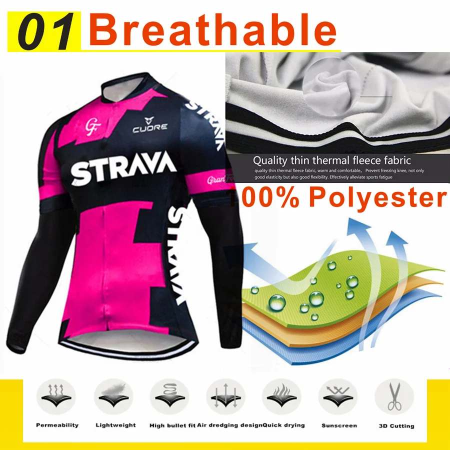 Зимний теплый флисовый трикотажный комплект для велоспорта STRAVA, ...