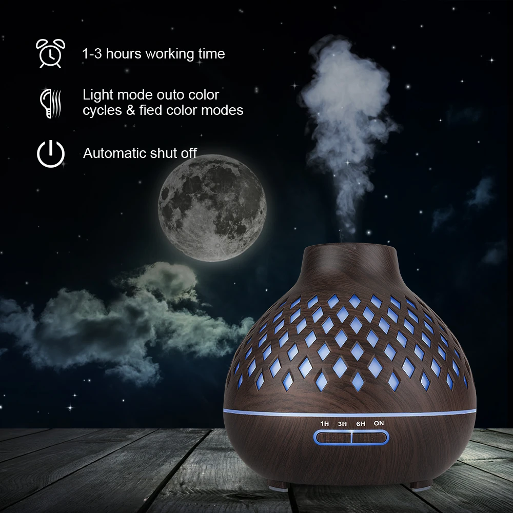 Электрический аромадиффузор 400 мл, увлажнитель воздуха, ультразвуковой генератор холодного тумана, распылитель, 7-цветная светодиодный ная подсветка, диффузор эфирного масла для дома