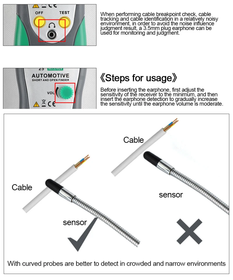 Этот инструмент предназначен для идентификации и отслеживания проводов или кабелей, не повреждая изоляцию. Вы также можете использовать его для проверки короткого замыкания и открытия цепи и так далее. В комплект поставки входят отправитель и приемник.