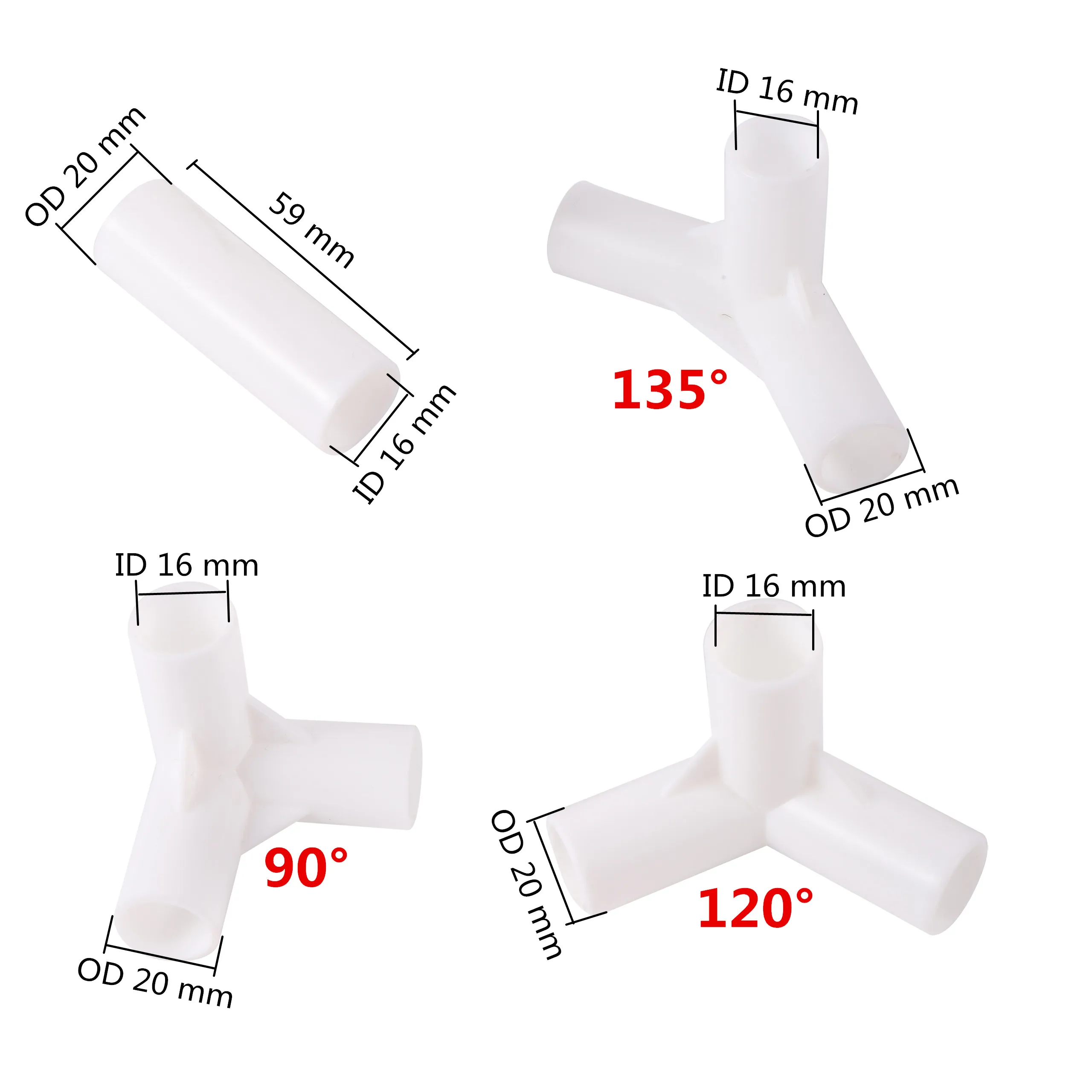 Прямоугольный крестообразный соединитель из ПВХ, 120 шт., 16 мм, 90, 135, градусов, тройник, фитинг из ПВХ для труб, фиксированные фитинги сделай сам для палатки