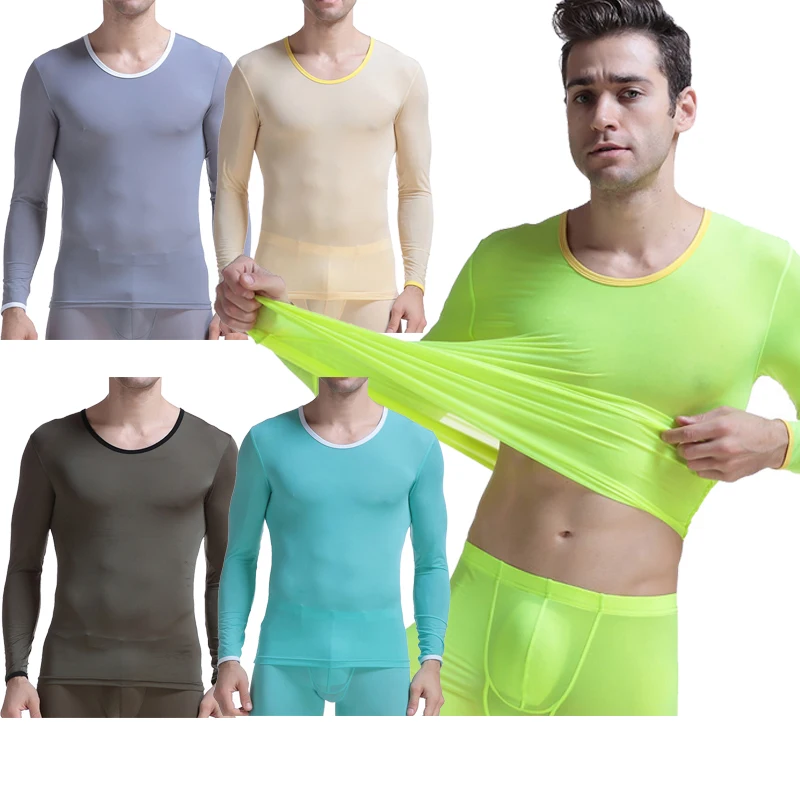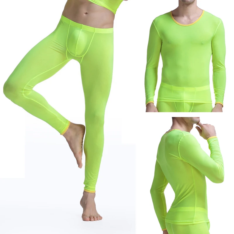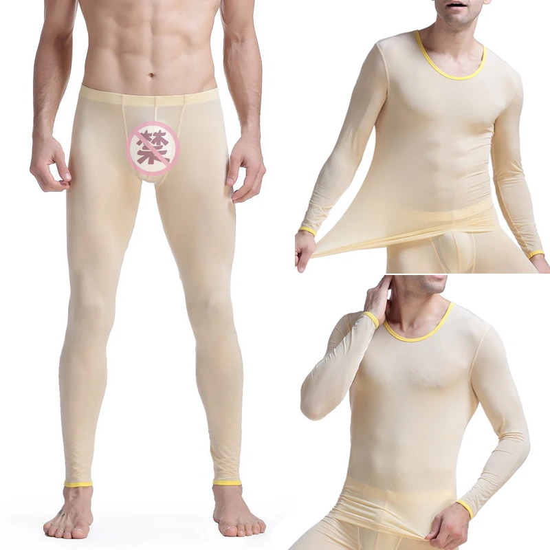 Мужской комплект для сна, шелковые прозрачные брюки, пикантная Пижама для фитнеса, быстросохнущее нижнее белье, колготки, Мужская одежда для сна