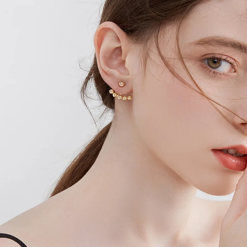 Серьги-гвоздики POFUNUO из настоящего 18-каратного золота с шариком...