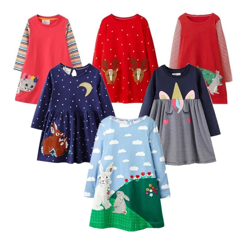 Платье детское хлопковое с длинным рукавом, с изображением животных