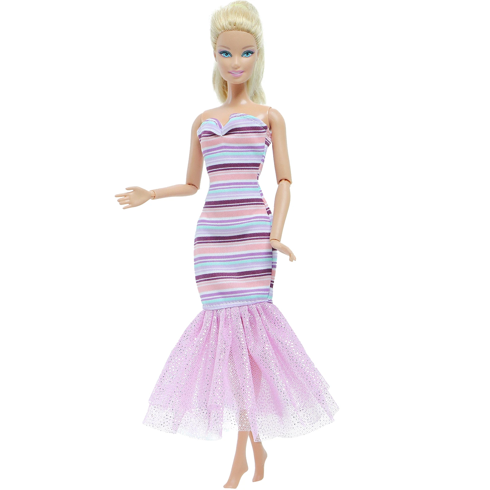Элегантная фиолетовая полосатая кружевная юбка-годе BJDBUS 1, бальное платье, приталенная вечерняя одежда без бретелек для Барби аксессуары для кукол игрушки