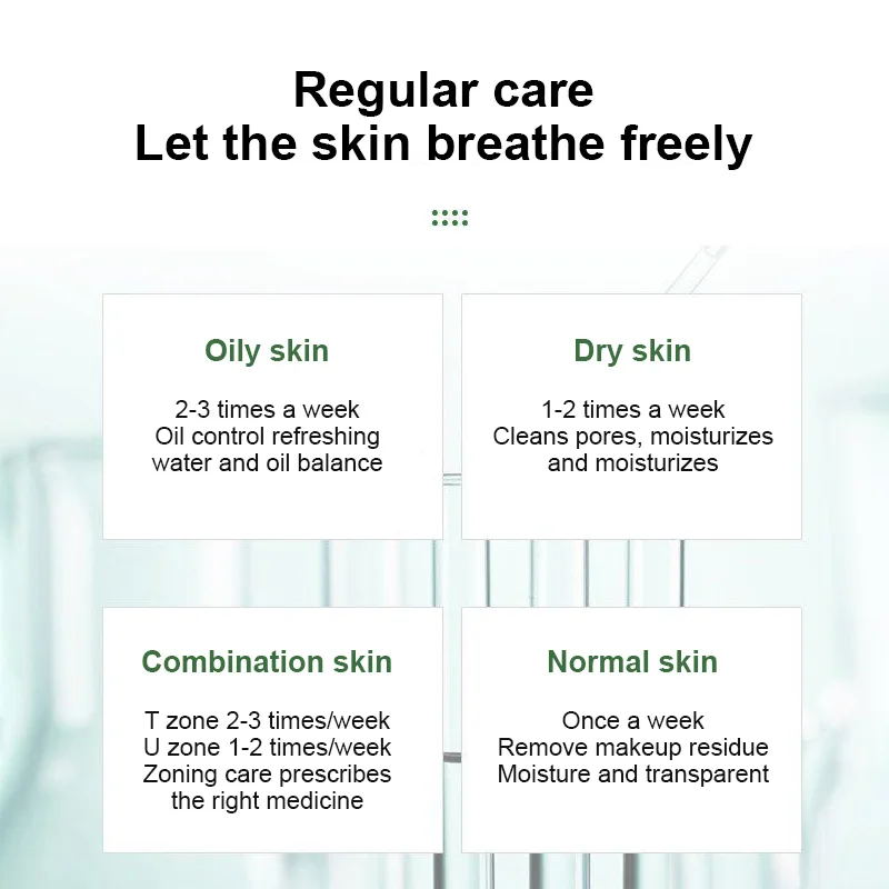 Однотонная Очищающая маска зеленого чая содержит экстракт зеленого чая, который может эффективно очищать поры кожи, глубоко очищать кожу от грязи, регулировать водный и масляный баланс кожи, восстанавливать влагу кожи, И питает кожу.
