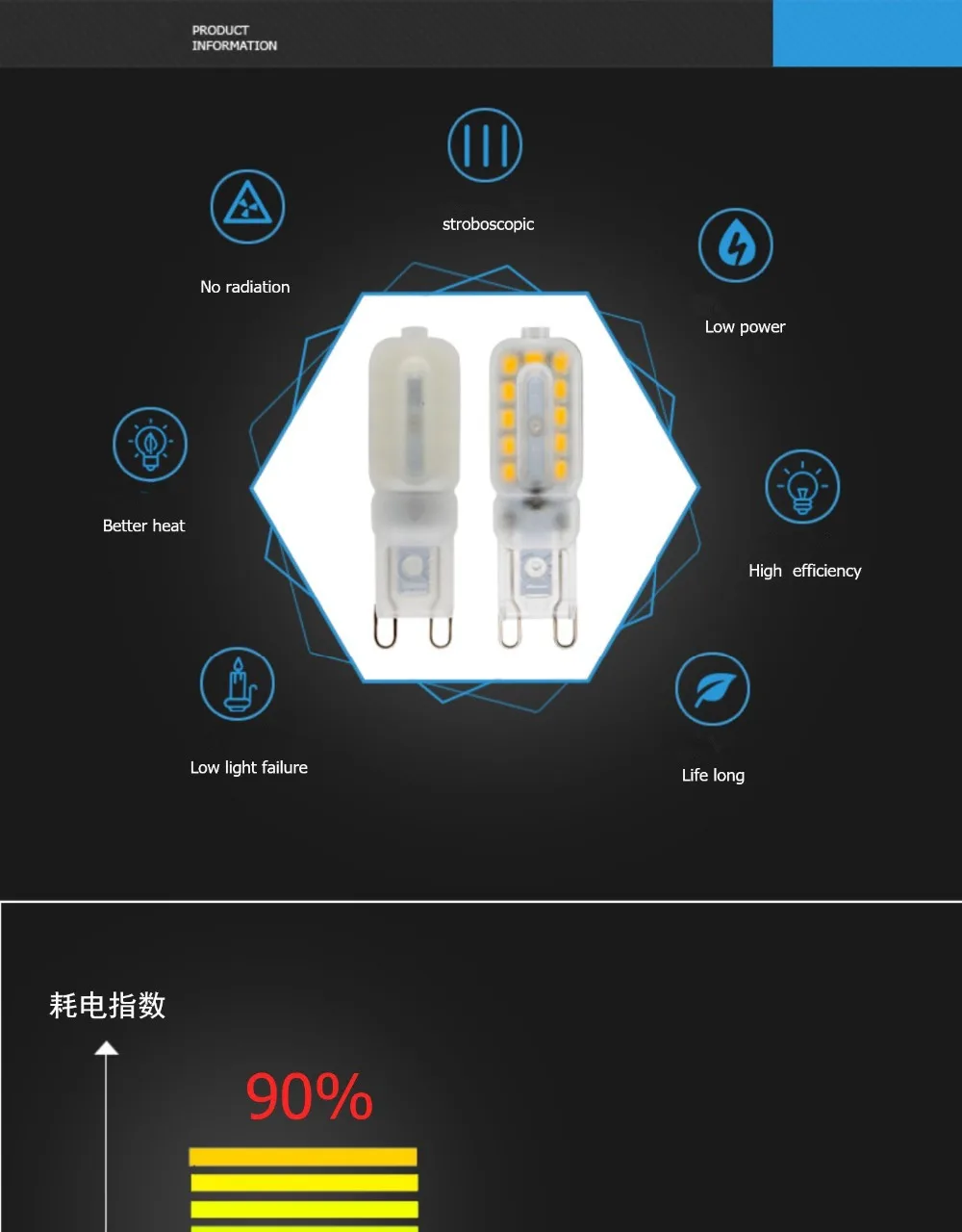 Бесплатная доставка, 3 шт. светодиодный светодиодные лампочки 3 Вт, 5 Вт, 7 Вт, G9, диммируемая лампа переменного тока 220 В, точесветильник светильник, люстра, ссветильник галогеновая лампа 20 Вт, 30 Вт