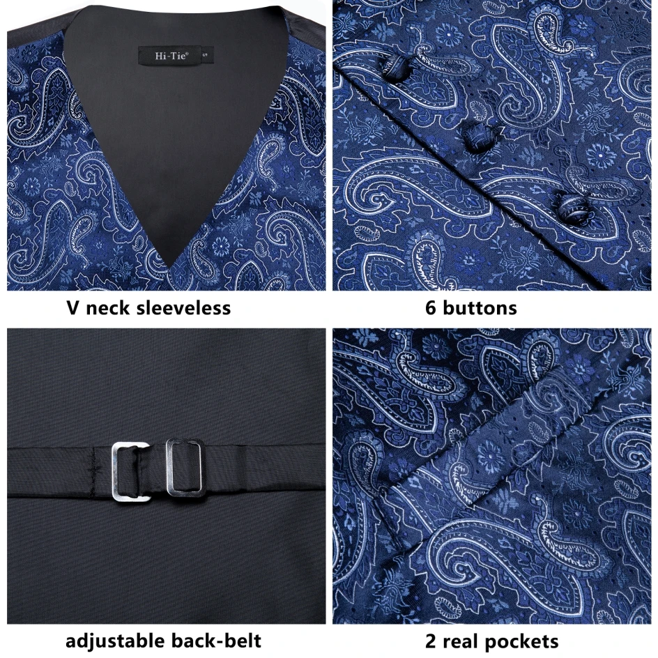 Hi-Tie Шелковый мужской костюм жилетки Приталенный жилет Галстук пл...