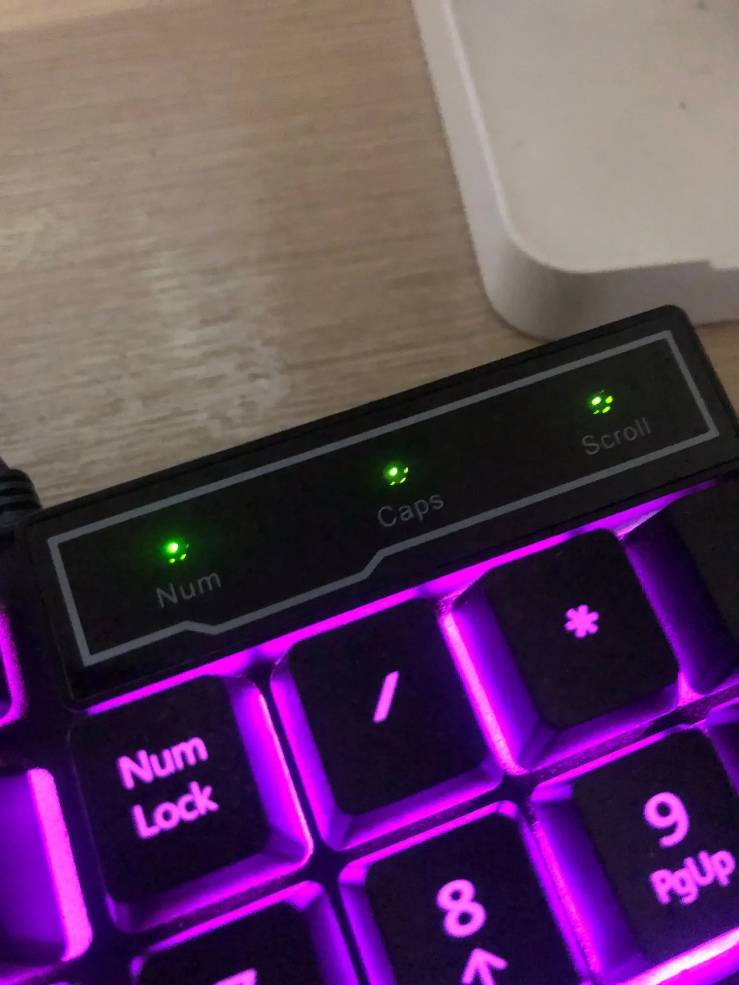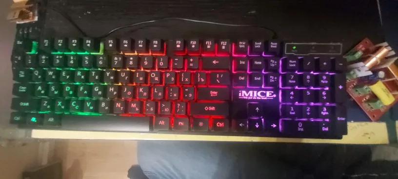 Клавиатура пришла очень быстро (доставка была по России, пришла за пару дней). Не переливается, свет статичный, в целом не шумная. Провод достаточно тонкий, поэтому с ним нужно быть аккуратнее при использовании. Индикаторы выглядят пыльными и грязными изнутри, если чистить то разбирать полностью надо, а так это не заметно. За 800 рублей товар отличный и соответствует описанию полностью