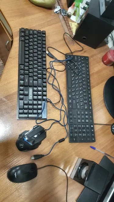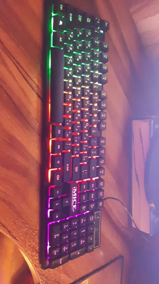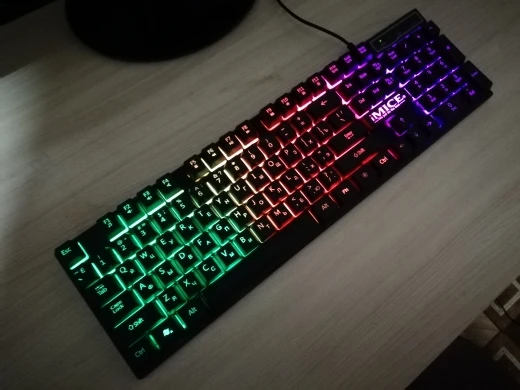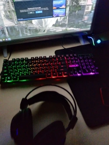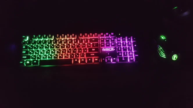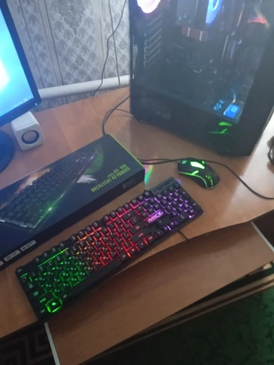 Отличная клавиатура. Мышь игровая и имеет кучу дополнительных кнопок. С подсветкой. Мышь правда немного великовата для моей руки, но думаю это надо привыкнуть. Ранее пользовался маленькой мышью. Клавиатура светится в темноте. Можно отключать подсветку если мешает кнопкой рядом с Fn. Клавиши нажимаются мягко не напрягает. Вообще стоящая вещь своих денег.