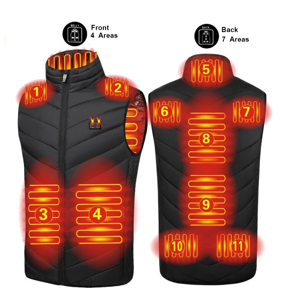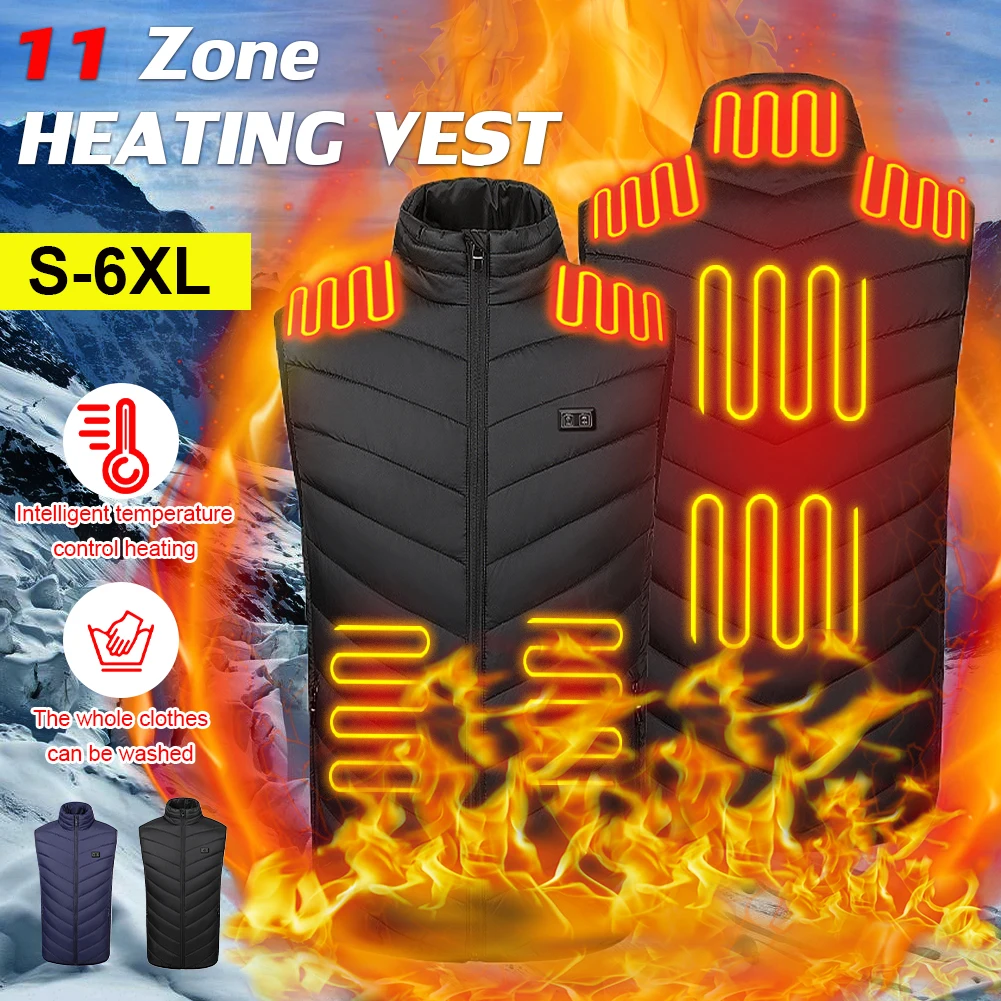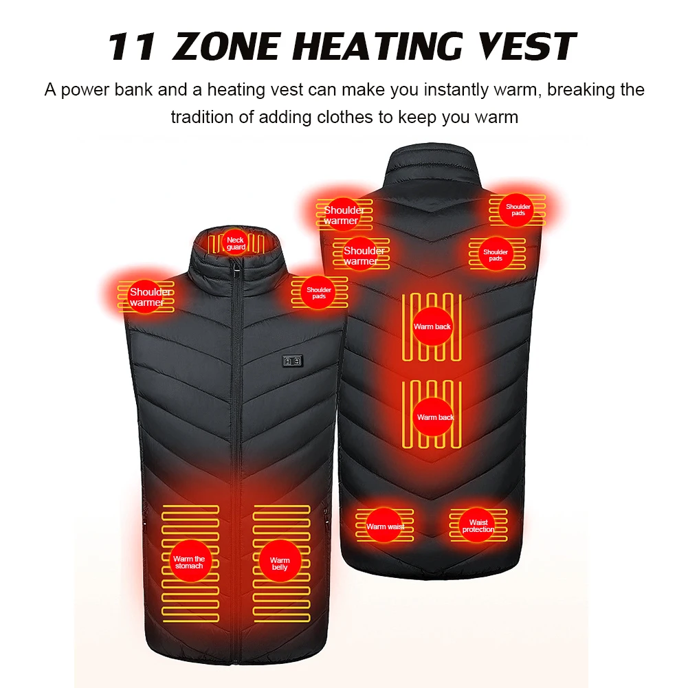 Жилет с подогревом 11 дюймов, куртка, пальто для мужчин и женщин с USB, одежда, умное теплое пальто с электрическим подогревом, зимние уличные жилеты с подогревом