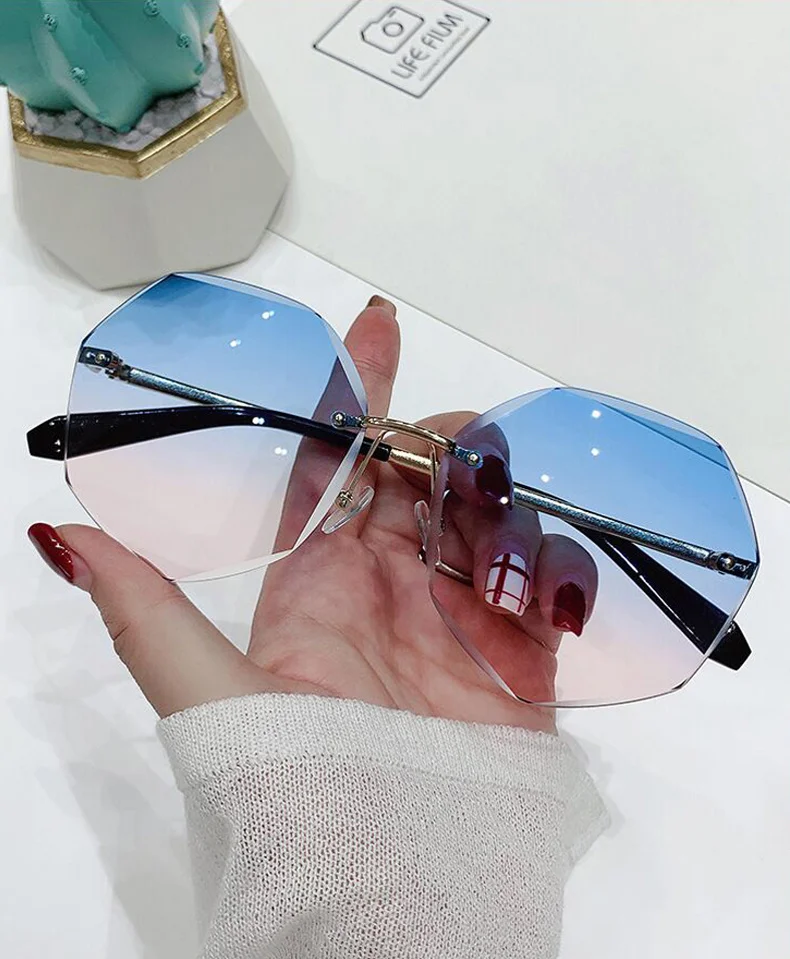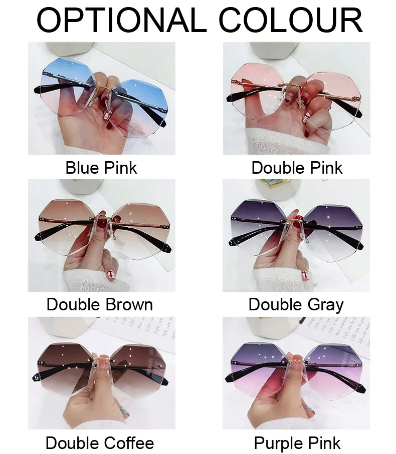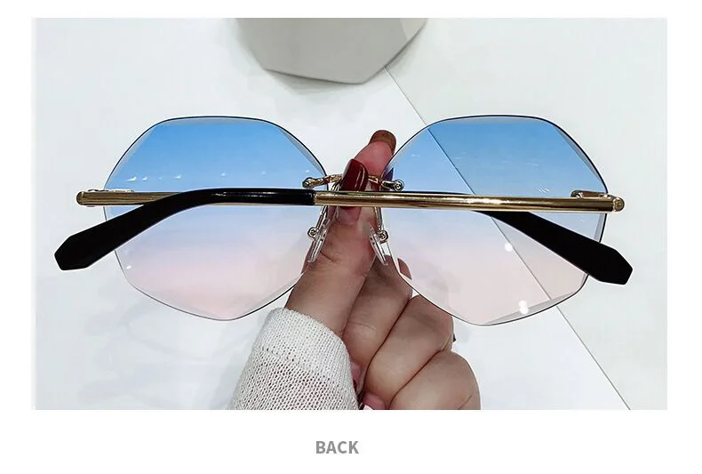 Очки солнцезащитные женские круглые без оправы, брендовые дизайнерские зеркальные солнечные очки без оправы, ретро модные большие фоторамки