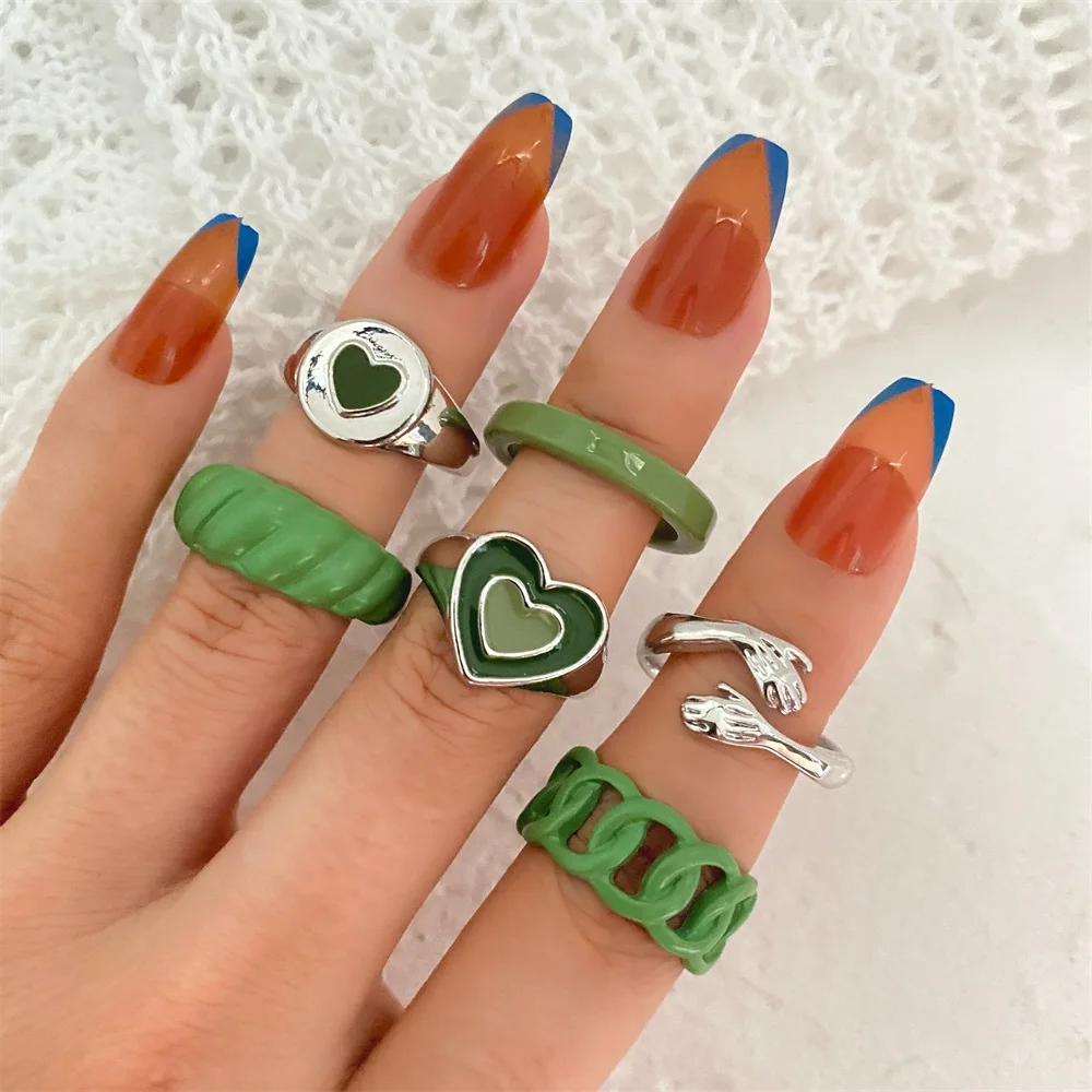 Женский винтажный набор ручных колец EN, романтическое кольцо с сердечком из смолы, 2021, модный ювелирный подарок y2k